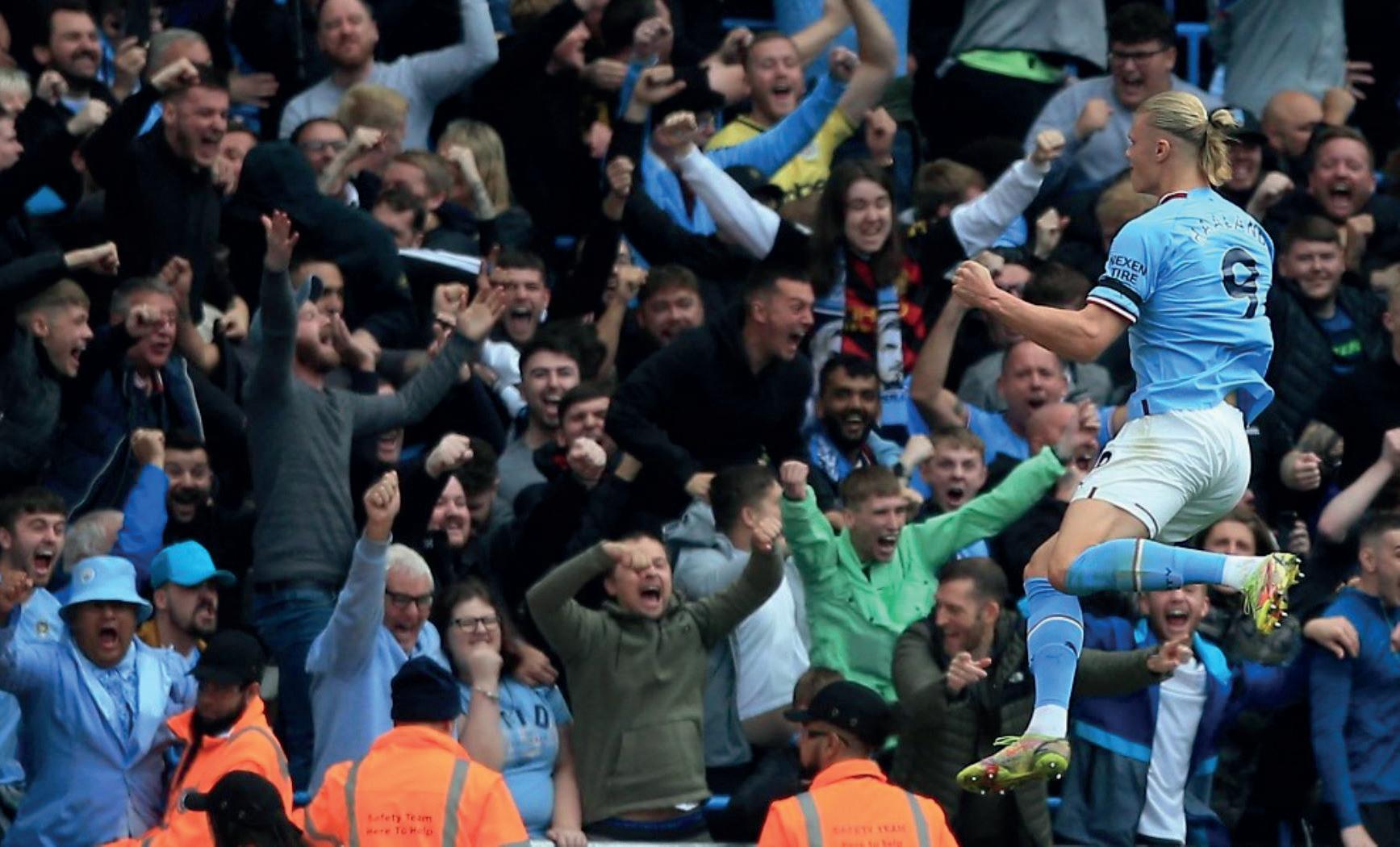 Haaland (1,95 m) aprovechó su altura a la media hora para saltar una decena de centímetros más alto que Scott McTominay (1,93 metros) y poner el 2-0 en el 34. Tres minutos más tarde, aprovechó un pase brillante de De Bruyne al segundo palo para establecer el tercero y luego el noruego dio