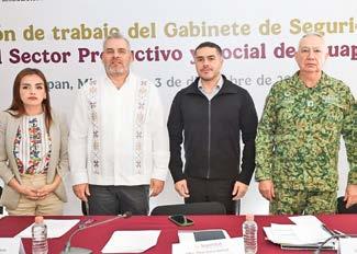 manera permanente para proteger los ciclos productivos, fortalecer la vigilancia territorial y realizar acciones contundentes contra los grupos delictivos que afectan a las familias y al sector económico de la región”, señaló la dependencia. Lo anterior, tras un encuentro en Uruapan, entre los titulares de la SSPC y Defensa con presidentes municipales, diputados locales, en donde también estuvo el gobernador Alfredo Ramírez Bedolla; el Fiscal Carlos Torres Piña y la alcaldesa de las demarcación, Grecia Quiroz.