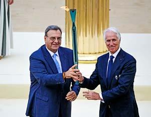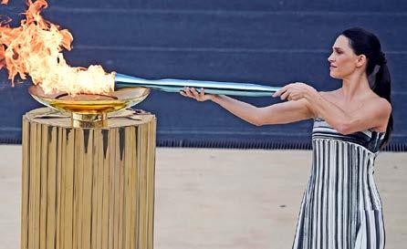 La llama de los próximos Juegos Olímpicos de Invierno 2026 de Milán-Cortina, que se celebrarán del 6 al 22 de febrero, llegó ayer a Italia, dos meses antes de la ceremonia de apertura. Entregada por la mañana en Atenas a los organizadores de estos terceros Juegos de Invierno italianos de la historia, la llama olímpica viajó rumbo a Roma en un avión que aterrizó en el aeropuerto de Fiumicino. 1.- La actriz griega Mary Mina, en el papel de la Suma Sacerdotisa, enciende la antorcha olímpica durante la ceremonia de entrega de la llama olímpica para los Juegos Olímpicos de Invierno y Paralímpicos Milano-Cortina 2026, en el estadio Panathinaikos de Atenas. 2.- La atleta griega de waterpolo Eleni Xenaki (centro) corre para encender la antorcha olímpica durante la ceremonia de entrega. 3.- El presidente del Comité Olímpico Helénico, Isidoros Kouvelos, y el presidente del Comité Olímpico Nacional Italiano y director general de los Juegos Olímpicos de Invierno Milán-Cortina 2026, Giovanni Malago, entregan la antorcha. 4.- Artistas posan junto a la bandera olímpica (centro), la bandera nacional griega (izquierda) y la bandera nacional italiana (derecha) durante la ceremonia. / AFP