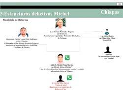 El documento de inteligencia militar, enviado en un correo con fidencial el 28 de octubre de 2021, muestra a Bermúdez Requena como cabeza de dos estructuras criminales paralelas, una en Chia pas (caso Michel) y otra en Tabas co (caso Casa Blanca).