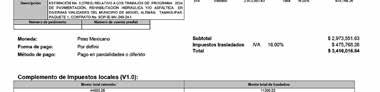 Una de las facturas más altas de este año es por 3.3 millones de pesos por obras de rehabilitación de un sistema de aguas residuales, así como otra por 3.4 millones de pesos por obras de repavimentación.