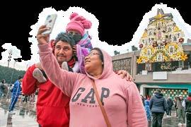 Una caravana de combis adornadas con luces y motivos navideños alegró a los paseantes que por un momento se congregaron en el Paseo de la Reforma para observar las unidades.