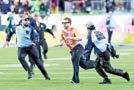 Durante el último cuarto del partido entre los Patriotas y Seahawks, un aficionado de los llamados “espontáneos” invadió el campo de juego en el Levi’s Stadium, por lo que el juego tuvo que detenerse algunos instantes. Incluso, el receptor de los New England Patriots, Kyle Williams, ayudó a detener al individuo. Varios aficionados lograron grabar la persecución por. Por lo general, los espontáneos que ingresan suelen abogar por alguna causa política o social, pero en este caso, el aficionado tenía escrito: “@FXALEXG trade with Athena”, un