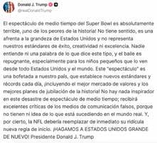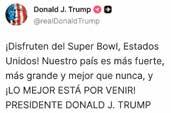 ‘SEGUIMOS AQUÍ’. Con un fuerte mensaje ante la política migratoria de EU, BadBunny rompió el récord de audiencia en un medio tiempo del Super Bowl. El éxito del espectáculo del artista latino molestó al presidente Trump, quien de inmediato descalificó el show. Previo al partido, se distribuyó propaganda contra el ICE PÁGINAS 2, 13, 15 Y 17