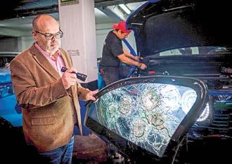 Las balas quedan atrapadas en las fibras de la poderosa lámina sintética que acoraza los 70 vehículos del empresario que se alistan para la justa deportiva que se organizará en conjunto con Canadá y Estados Unidos, en junio y julio próximos.