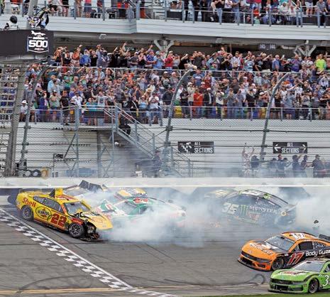 1.- Tyler Reddick, piloto del Toyota #45 Chumba Casino, y el legendario exbasquetbolista Michael Jordan, miembro del Salón de la Fama de la NBA y copropietario de 23XI Racing, levantan el Trofeo Harley J. Earl en la línea de la victoria después de ganar la carrera Daytona 500 de la NASCAR Cup Series en el Daytona International Speedway en Florida. 2.- Joey Logano, piloto del Ford #22 Shell Pennzoil, Brad Keselowski, piloto del Ford #6 Castrol, Chase Elliott, piloto del Chevrolet #9 NAPA Auto Parts, y Riley Herbst, piloto del Toyota #35 Monster Energy Zero Sugar, giran después de un incidente en la pista para finalizar la gran carrera de NASCAR. 3:- El piloto mexicano Daniel Suárez finalizó en la 13ª posición en la famosa Daytona 500 debido a un par de incidentes que sucedieron justo en la última vuelta. 4.- El ambiente que se vivió en la carrera fue espectacular y hasta el personaje de Los Simpson, Bart, apareció con una bandera para participar en uno de los eventos más importantes en Norteamérica. 24 HORAS