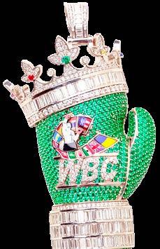 del WBC que resulten ganadores en Eventos Principales del Campeonato Mundial, siendo la primero de ellos, el de este sábado con la pelea de Mario Barrios, campeón welter WBC, y el retador Ryan García, en la Arena T-Mobile de Las Vegas. Con un valor estimado, entre la cadena y la figura, de 40 mil dólarese, el diseño presenta un guante de boxeo verde del WBC esculpido en oro blanco, con aproximadamente 18,9 quilates de esmeraldas y diamantes distribuidos en más de 800 piedras. Además, la figura pende de una cadena con forma