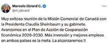 “Evaluamos el cumplimiento de los acuerdos pactados en nuestra reunión de octubre de 2025 y prácticamente hemos cumplido todos al 100%”, dijo Berdegué en su cuenta de X.