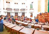 Y no, no es una metáfora de lo que sucede ahí… La sorpresiva lluvia de ayer reveló deficiencia en el mantenimiento del edificio y se tuvieron que poner cubetas de plástico sobre las curules para que no se maltrataran con las goteras. ¿Presagio relacionado la negociación de la reforma electoral? ¿Será?