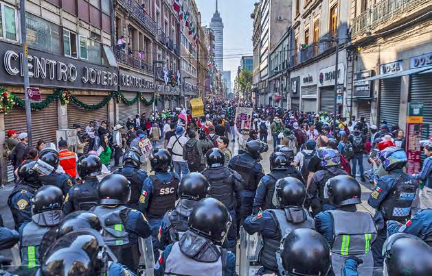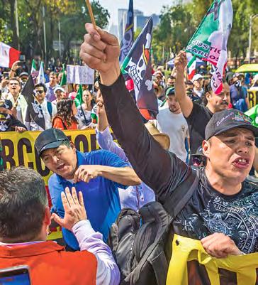 rededor de 17 mil personas según cifras oficiales, la marcha de este jueves se mostró desangelada, aunque requirió la movilización de policías antimotines para impedir que interfirieran con el desfile por el 115 aniversario de la Revolución. Las consignas oscilaron entre la crítica al Gobierno, a la presidenta Sheinbaum y la exigencia de medicinas para los niños con cáncer. Además de exigir la liberación de los “presos políticos”, en referencia a los 18 detenidos por la violencia en la marcha del 15 de noviembre. La movilización se encontró, poco antes de llegar a la Glorieta de las Mujeres que Luchan, con un muro de policías antimotines, que los dejaron pasar hasta que terminó el desfile. / LUIS VALDÉS Y ALEJANDRO SALAS ROA