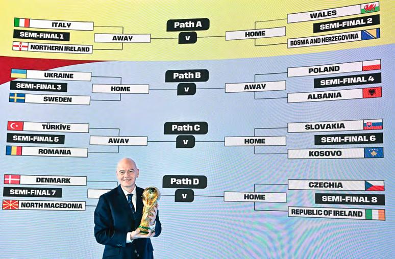 Para el sector C, Turquía jugará contra Rumanía y Eslovaquia ante Kosovo y el local en la final saldrá del último cruce entre eslovacos y kosovares. Por último, en el grupo D, Dinamarca enfrentará a Macedonia del Norte y Chequia ante Irlanda, siendo de este cruce del que saldrá la localía para la final. /24HORAS