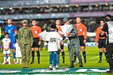 EN SU HONOR. Como un reconocimiento a su labor en el operativo del fin de semana en Jalisco, previo al partido que disputó México contra Islandia, se agradeció a las Fuerzas Armadas y se guardó un minuto de silencio por quienes entregaron la vida en cumplimiento de su deber. Los tricolores se alzaron con la victoria en el amistoso por 4 goles a 0 DXT P. 22