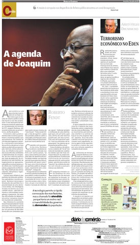 Fundado em 1º de julho de 1924 CONSELHO EDITORIAL Rogério Amato, Guilherme Afif Domingos, João Carlos Maradei, Marcel Solimeo Diretor de Redação Moisés Rabinovici (rabino@acsp.com.br) Editor-Chefe: José Guilherme Rodrigues Ferreira (gferreira@dcomercio.com.br). Editor de Reportagem: José Maria dos Santos (josemaria@dcomercio.com.br). Editores Seniores: chicolelis (chicolelis@dcomercio.com.br), José Roberto Nassar (jnassar@dcomercio.com.br), Luciano de Carvalho Paço (luciano@dcomercio.com.br), Luiz Octavio Lima (luiz.octavio@dcomercio.com.br), Marcus Lopes (mlopes@dcomercio.com.br) e Marino Maradei Jr. (marino@dcomercio.com.br). Editor de Fotografia: Agliberto Lima. Editores: Cintia Shimokomaki (cintia@dcomercio.com.br), Heci Regina Candiani (hcandiani@dcomercio.com.br), Tsuli Narimatsu (tnarimatsu@dcomercio.com.br) e Vilma Pavani (pavani@dcomercio.com.br. Subeditores: Rejane Aguiar e Ricardo Osman. Redatores: Adriana David, Evelyn Schulke, Jaime Matos e Sandra Manfredini. Repórteres: André de Almeida, Karina Lignelli, Kety Shapazian, Lúcia Helena de Camargo, Mariana Missiaggia, Mário Tonocchi, Paula Cunha, Rejane Tamoto, Renato Carbonari Ibelli, Rita Alves e Sílvia Pimentel. Gerente Executiva e de Publicidade Sonia Oliveira (soliveira@acsp.com.br) Gerente de Operações Valter Pereira de Souza (valter.pereira@dcomercio.com.br) Serviços Editoriais Material noticioso fornecido pelas agências Estadão Conteúdo, Folhapress, Efe e Reuters Impressão S.A. O Estado de S. Paulo. Assinaturas Anual - R$ 118,00 Semestral - R$ 59,00 Exemplar atrasado - R$ 1,60