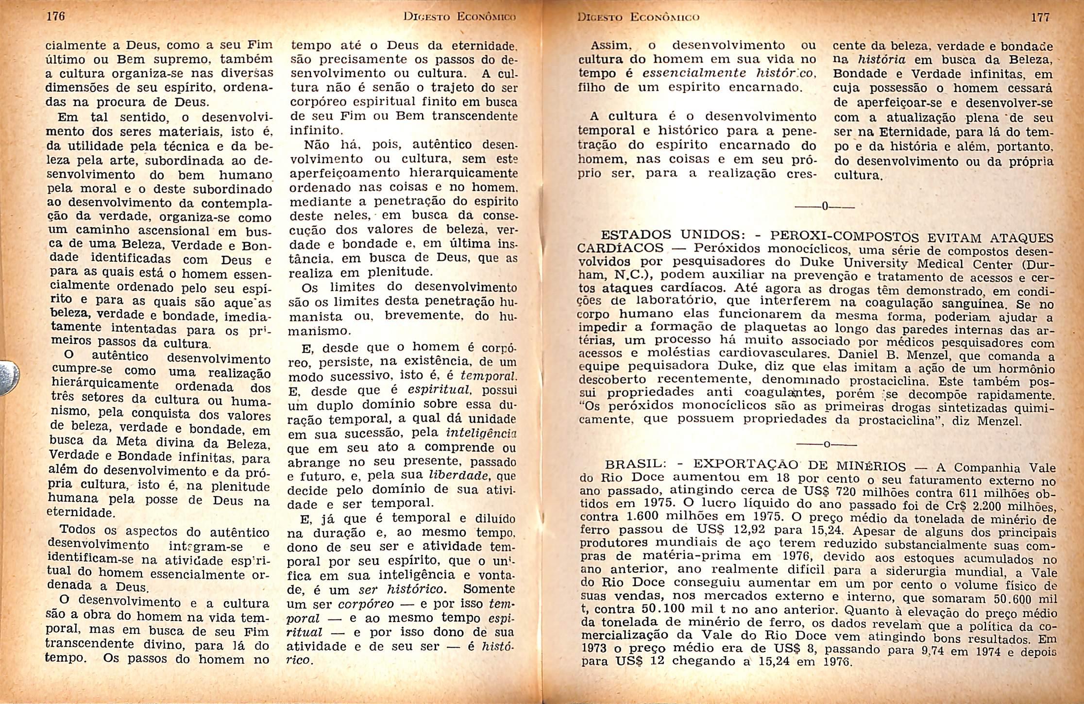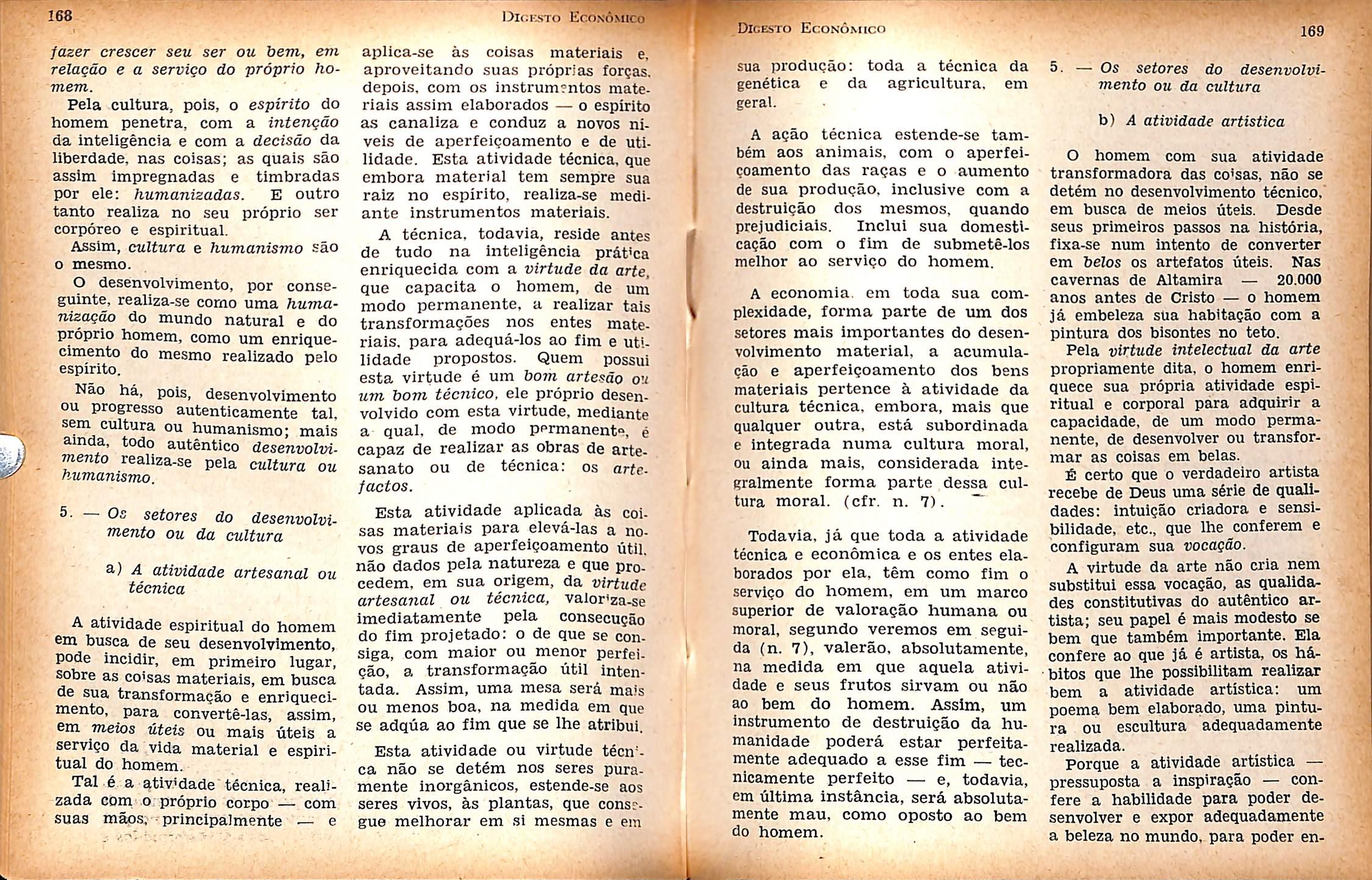 Não há. pois, autêntico desen volvimento ou cultura, sem est? aperfeiçoamento hierarquicamente ordenado nas coisas e no homem, mediante a penetração do espirito deste neles, em busca da conse cução dos valores de beleza, ver dade e bondade e. em última ins tância. em busca de Deus. que as realiza em plenitude.