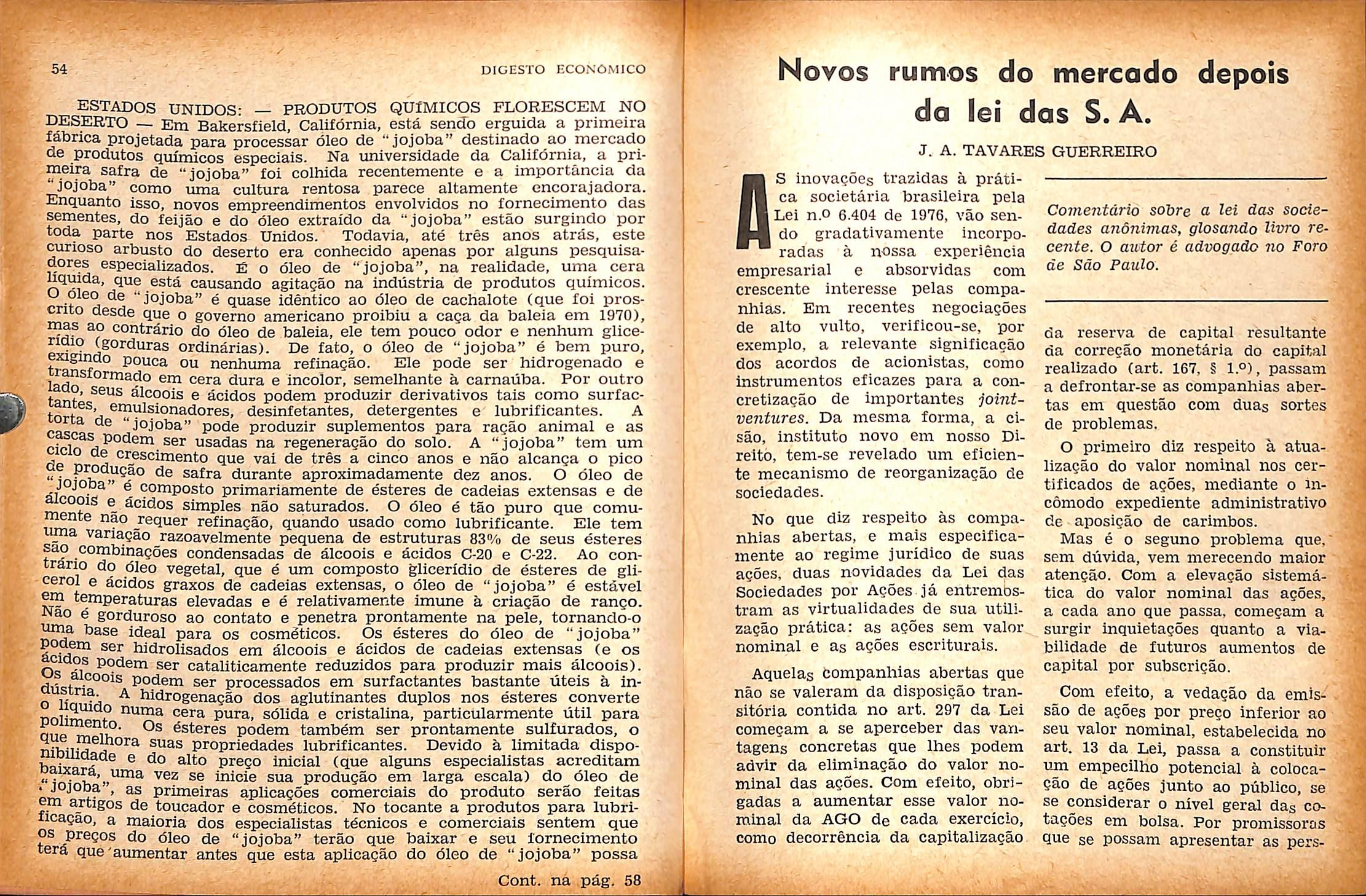Novos rumos do mercado depois da lei das S.A. — J- A. Tavares