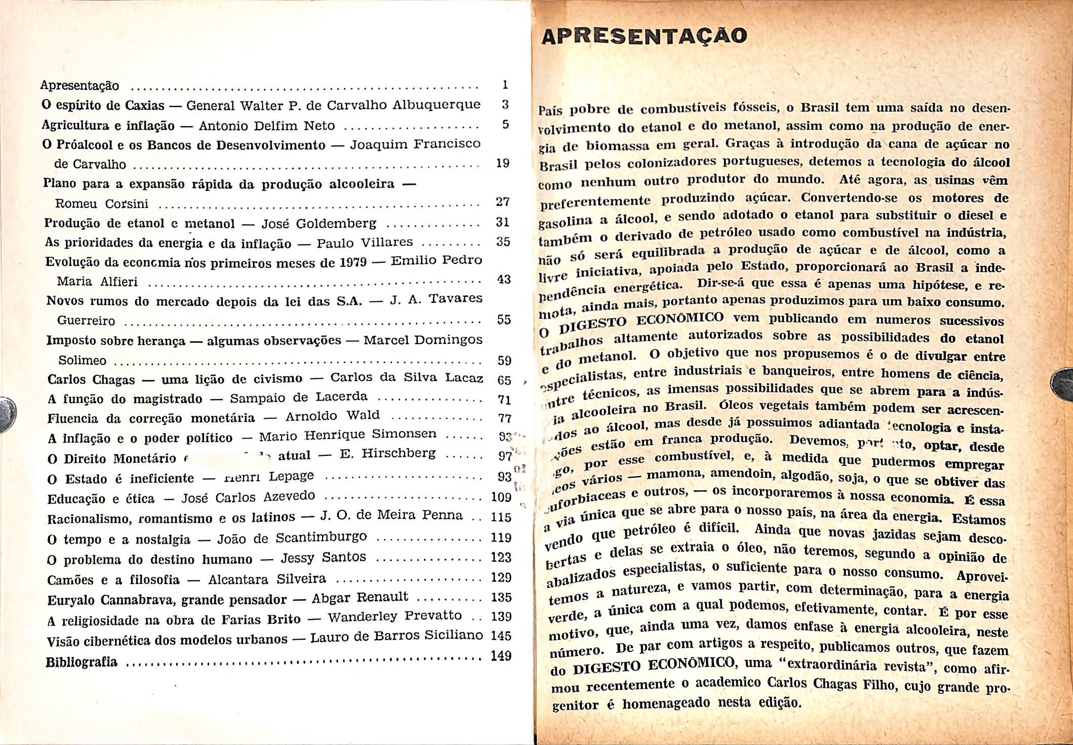 jjis t! delas se extraia o oleo, não teremos, especialistas, o suficiente para o nosso consumo. Aprovei- natureza, e vamos partir, com determinação, para a energia erde, u ^ Podemos, efetivamente, contar. É por esse motivo, que, ainda uma vez, damos enfase à energia alcooleira, neste número. De par com artigos a respeito, pubUcamos outros, que fazem PIGESTO ECONÔMICO, uma “extraordinária revista”, recentemente o acadêmico Carlos Chagas Filho, cujo grande progenitor é homenageado nesta edição.