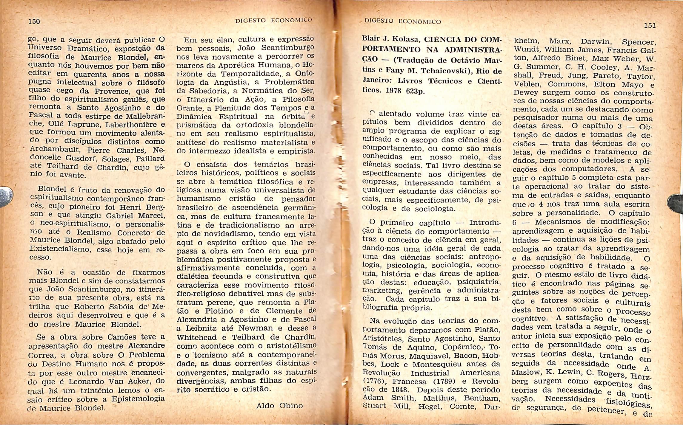 Não é a ocasião de fixarmos mais Blondel e sim de constatarmos que João Scantimburgo, no itinerá rio de sua presente obra, está na trilha que Roberto Sabóia de' Me deiros aqui desenvolveu e que é a do mestre Maurice Blondel.