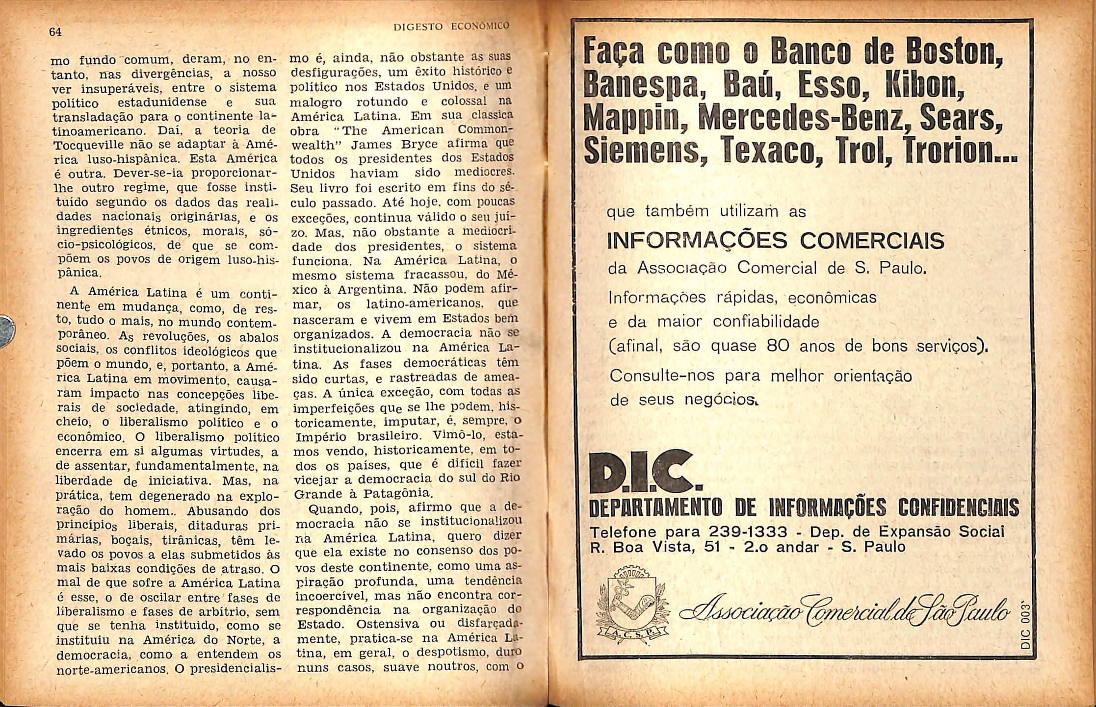 O DIgcsio Econômico, órgão dc in formações econômicas c financeiras, ó publicado bimcstralmenle pela Editõra Comercial Ltda.