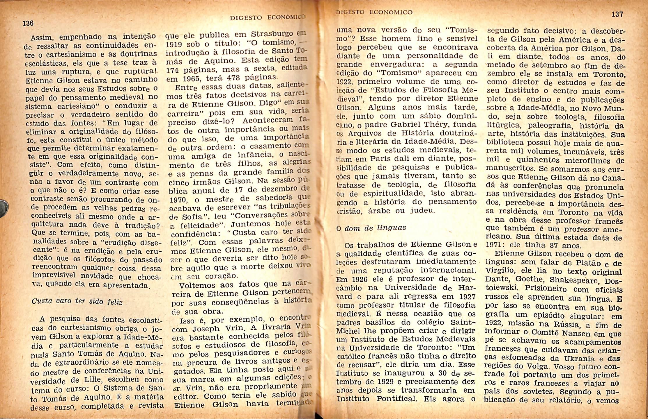guL vossa e ascendente. Li vossas obras, quan do elas apareceram, simultanea mente às de Gilson. Vos éreis am bos trabalhadores que não repon do trabalho senão traba- savam lhando. E como eu gosto de refietii' um