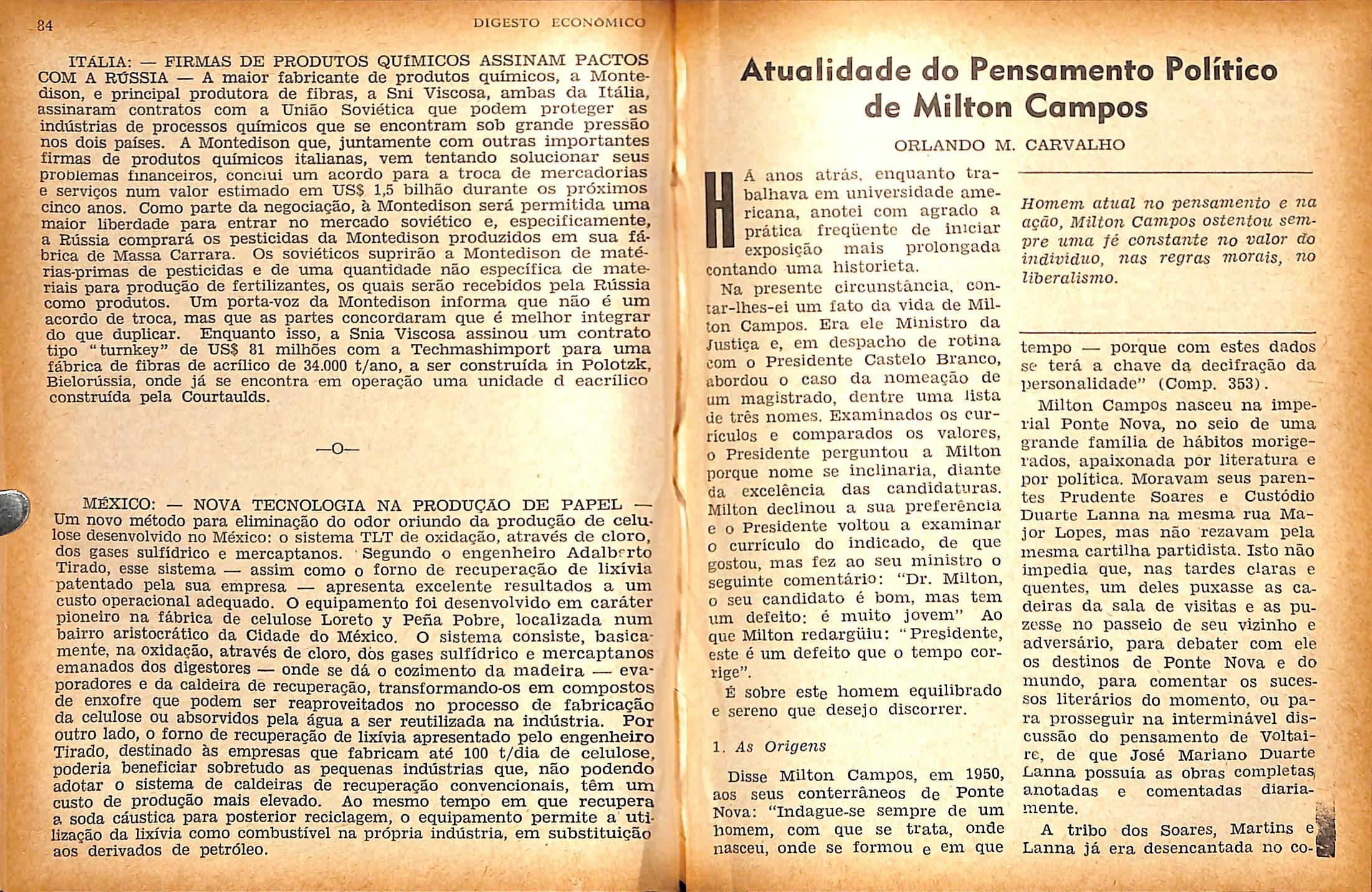 Atualidade do pensamento político de Milton Campos — Carvalho
