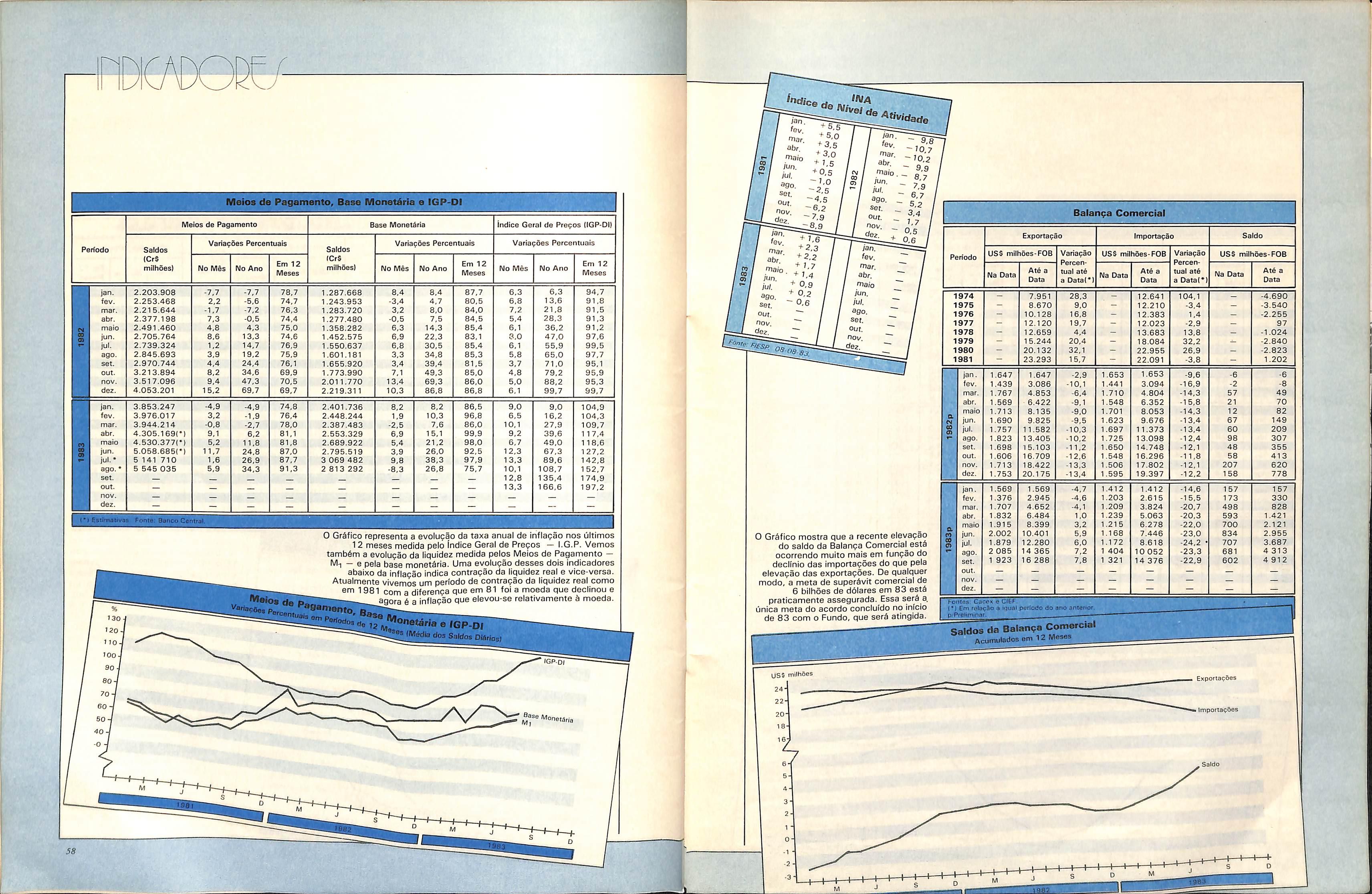 públicos na área de infraestrutura econômica, a prefixação da correção monetária em 1980 e o processo de estabiliza ção da economia. A atuação conjunta destes fatores, inter nos e externos, explica não só a ressurgência do processo infla cionário como também seu ca ráter recorrente, ou seja, sua imunidade aos tratamentos su perficiais a que vem sendo sub metido; como suas causas são estruturais, torna-se necessária a adoção de tratamentos mais profundos e eficazes.