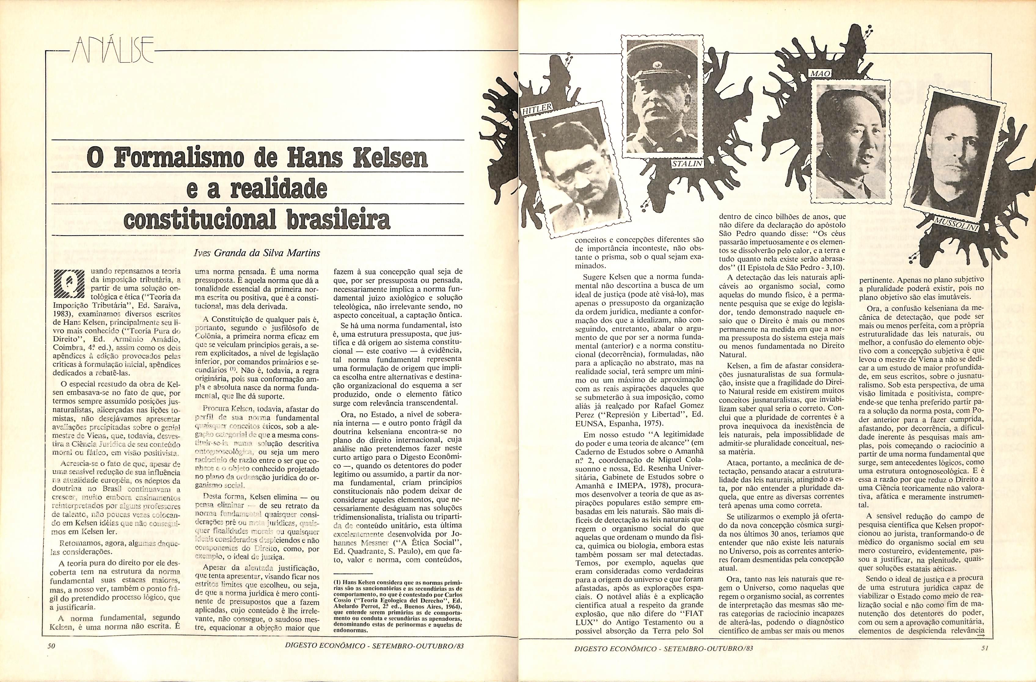 Acrescia-se o fale de que, apesar de urna sensível redução de sua influência r.a atualidade européia, os adeptos da doutrina no Brasil continuavam a evesre!', muiiO embora ensinamentos I ici.nterprétados por j de talento, não poucas ve:.es coiccaíido em Kelsen idéias que nãc cous; mos em Kelsen ler.