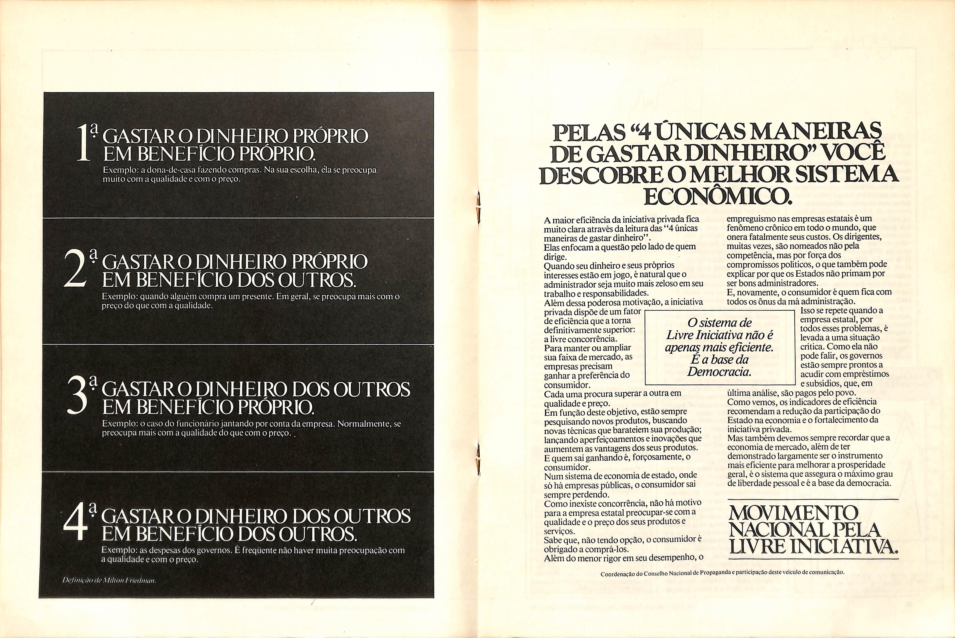 Os demais meios de comunica ção veiculam, diariamente, in formações a respeito, a fim de que a opinião pública, segundo é norma das democracias que se prezam, julgue o que se faz pela Nação e, também, quem o faz, até mesmo governos e gover nantes. É enorme a massa de contribuições encaminhadas ao Governo. Se nem todas são aproveitáveis no momento, se nem todas podem ser executa das, se, em suma, nem todas coincidem com as possibilida des do Poder Público, grande número delas reveste a maior utilidade, e devem, por isso, merecer acolhimento.