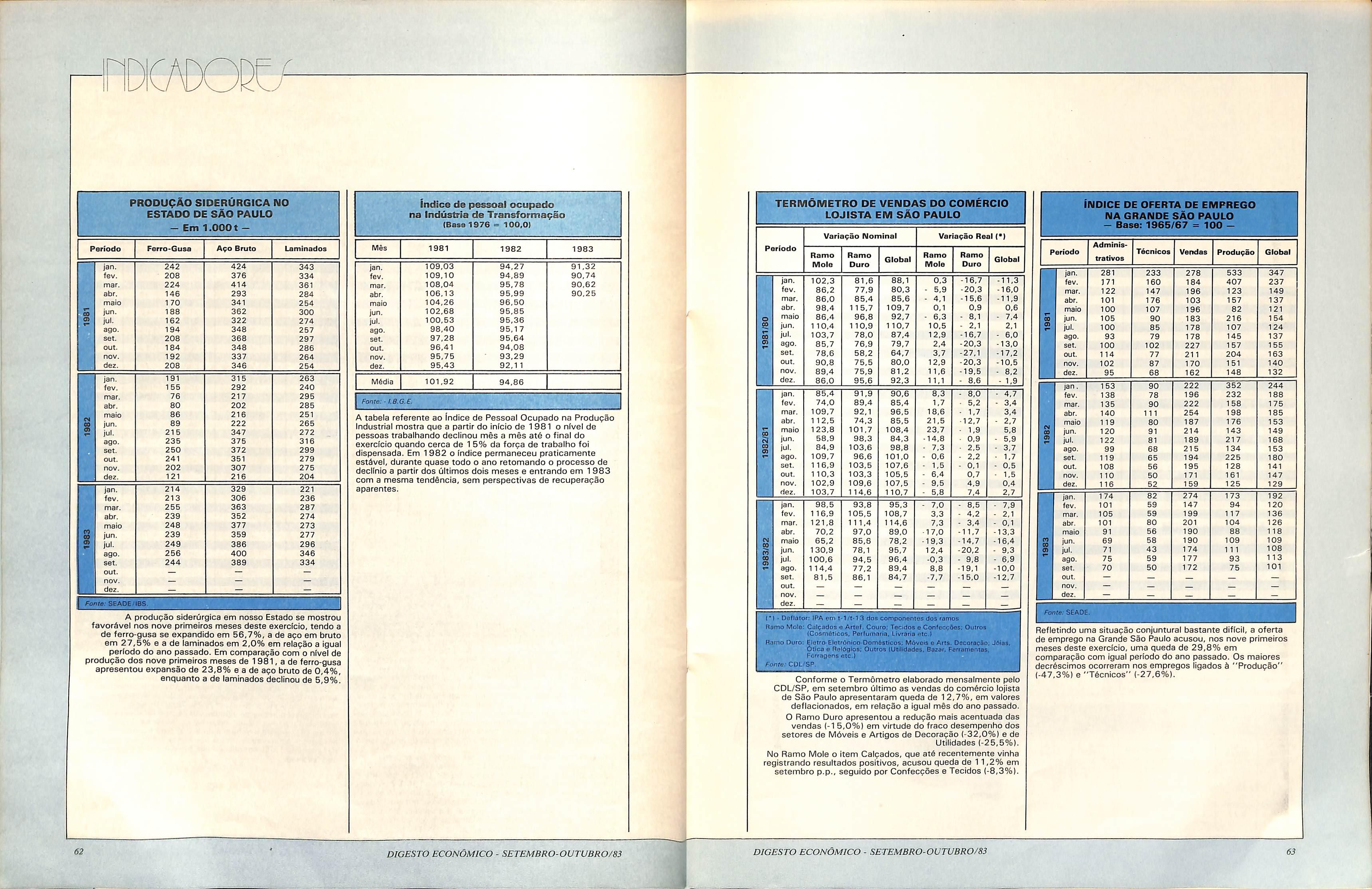 Refletindo uma situação conjuntural bastante difícil, a oferta de emprego na Grande São Paulo acusou, nos nove primeiros meses deste exercício, uma queda de 29,8% em comparação com igual período do ano passado. Os maiores decréscimos ocorreram nos empregos ligados à "Produção" (-47,3%) e "Técnicos" (-27,6%).