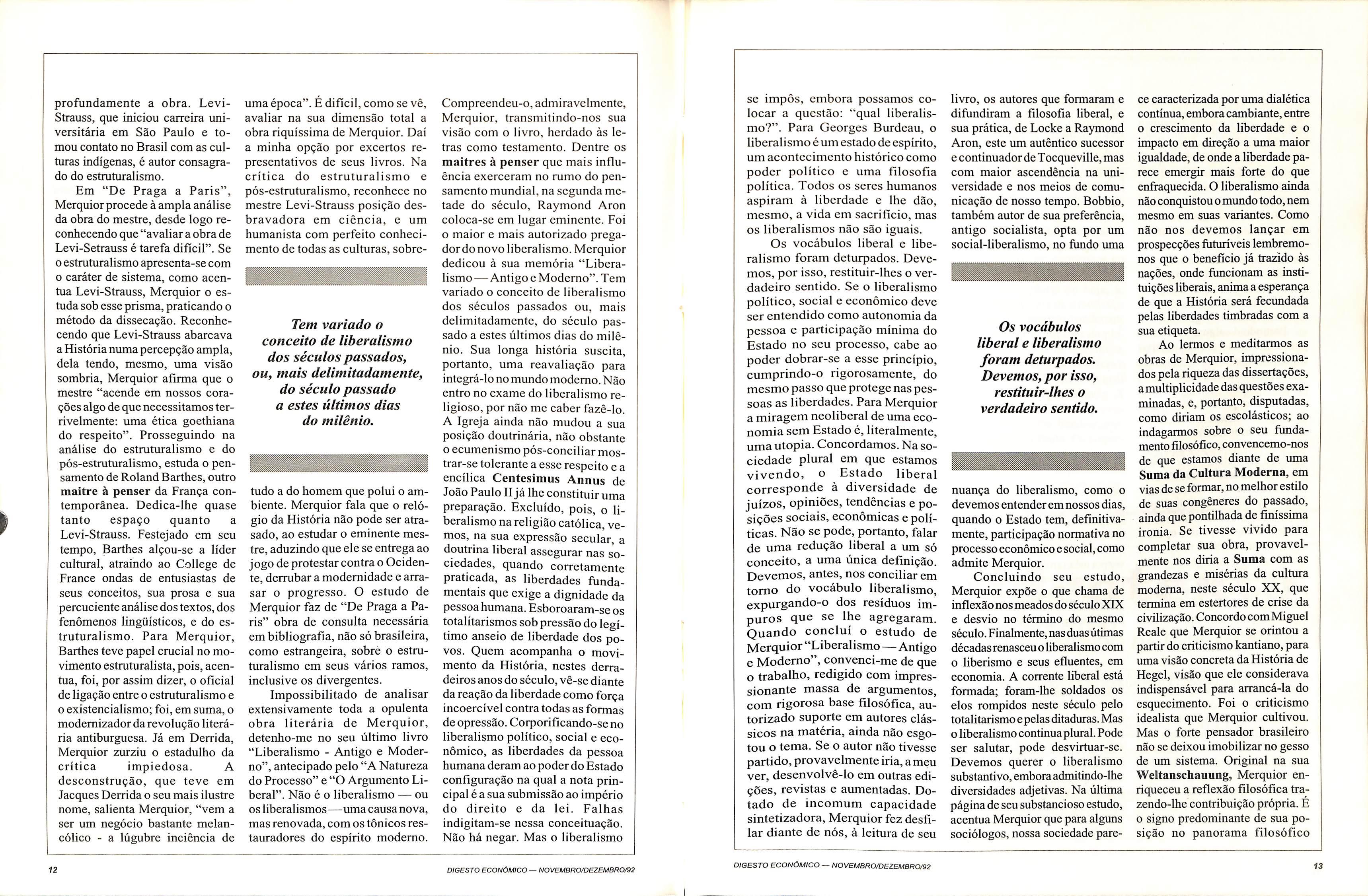 seus estudos sobre os problemas do nosso tempo. Rendo homena gem ao meu predecessor. Consi dero um privilegio fazer o elogio de morto galardoado de tantos méritos. Nãoconheei pessoalmcnteJose Guilherme Merquior. Nunca nos encontramos. Nunca trocamos palavras. É provável que, em diá logos, divergíssemos, c divergiria mos, cm teses das muitas que nos