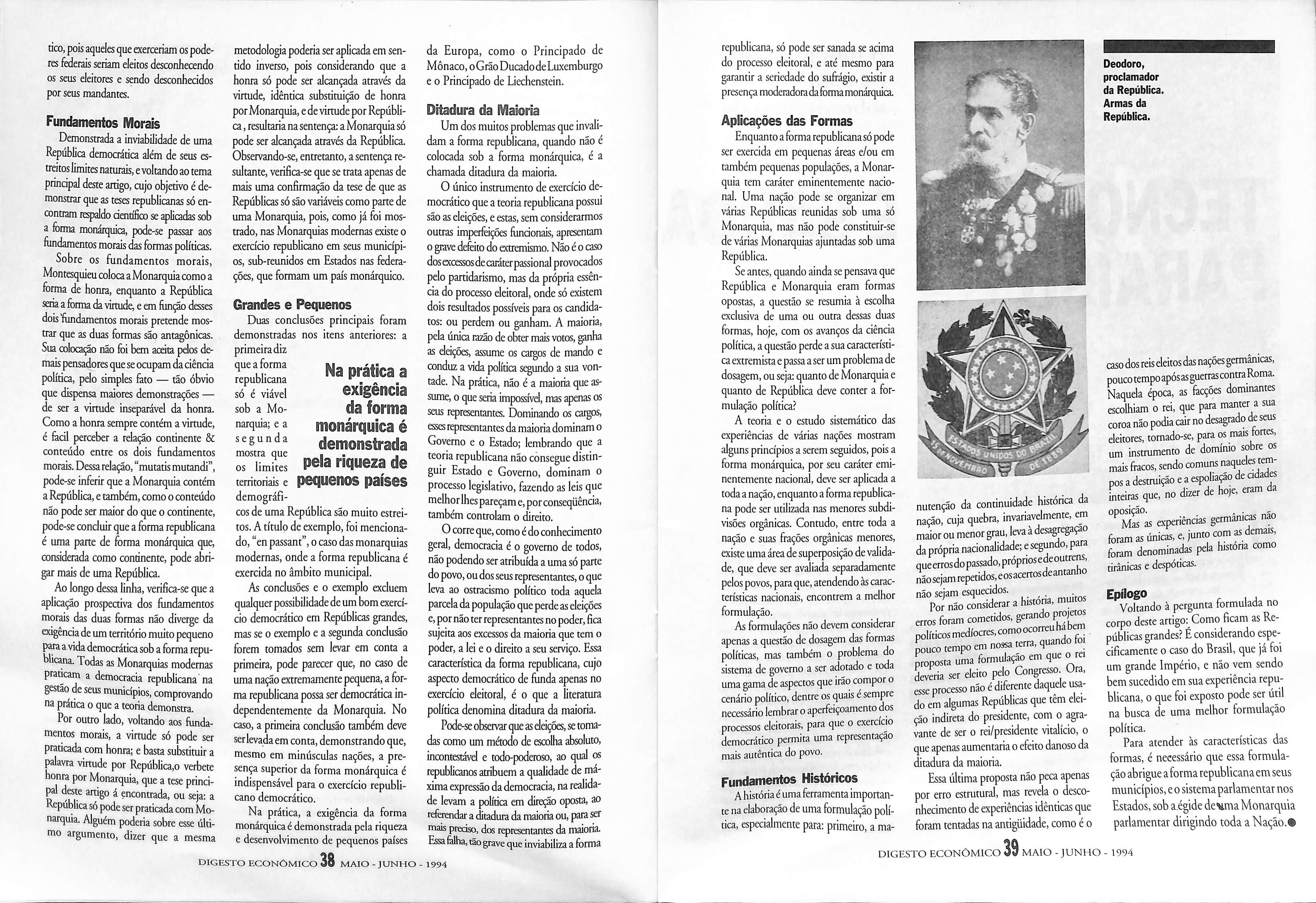 Os do úteis republicanismo tomam por princípio serem as eleições o melhor instrumento da democracia, e, a partir desse princí pio, passam ao extremismo de conside rar válido tudo aquilo, ou todos aque les, que passam pela prova eleitoral, o que é um erro grosseiro. Essa caracterís tica da forma republicana, se por um lado demonstra a sua inviabilidade, por outro tem levado seus defensores à busca infrutífera de soluções que possam darlhe maior abrangência, na fracassada tentativa de aplicá-la em países de maior área, e/ou de maior população.