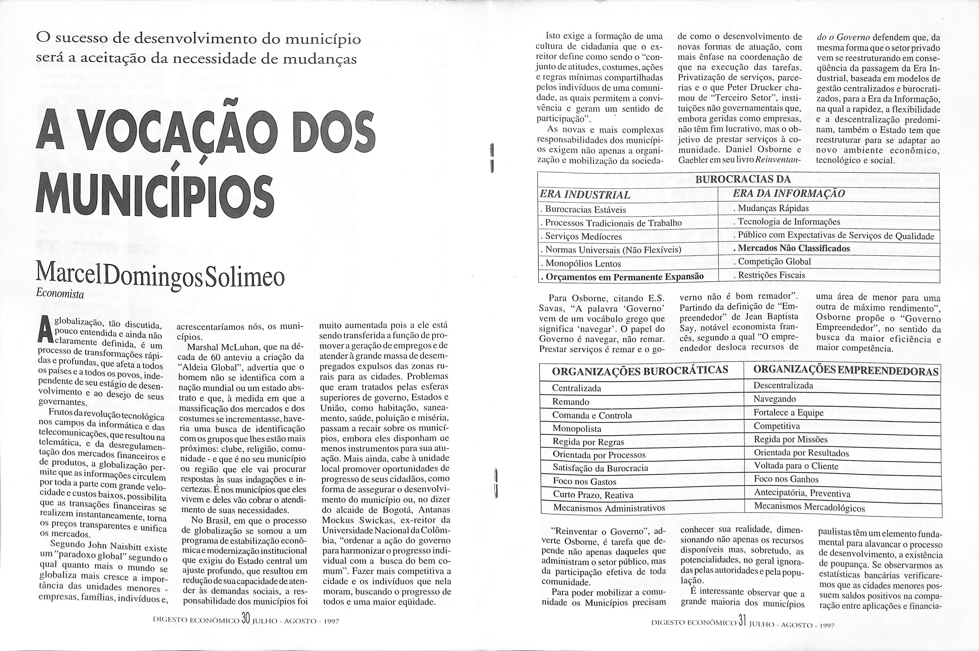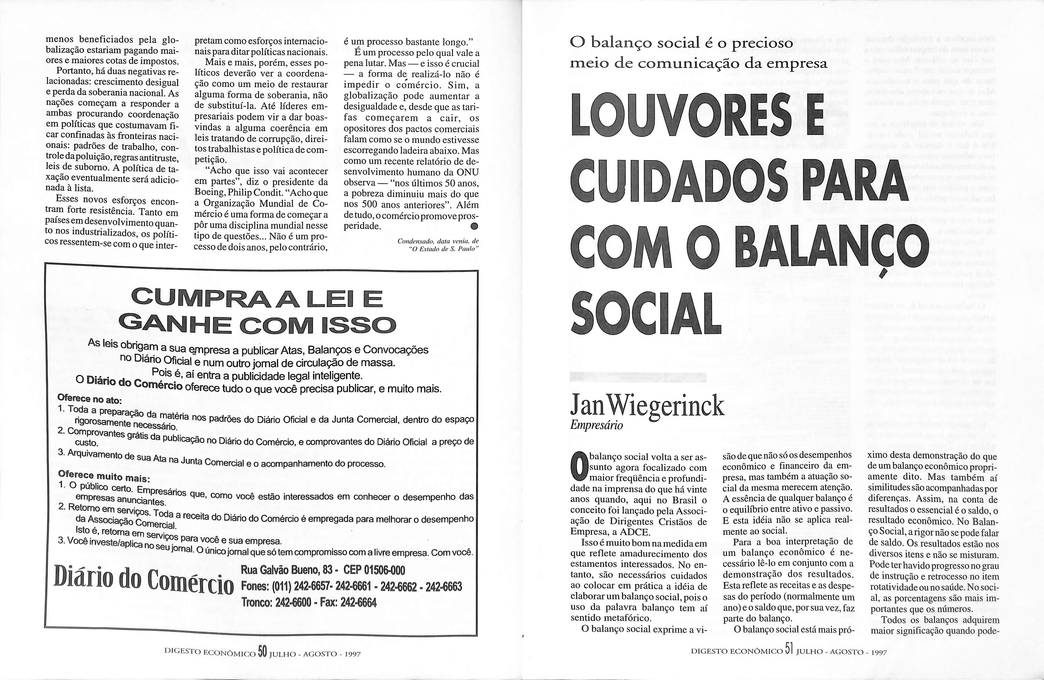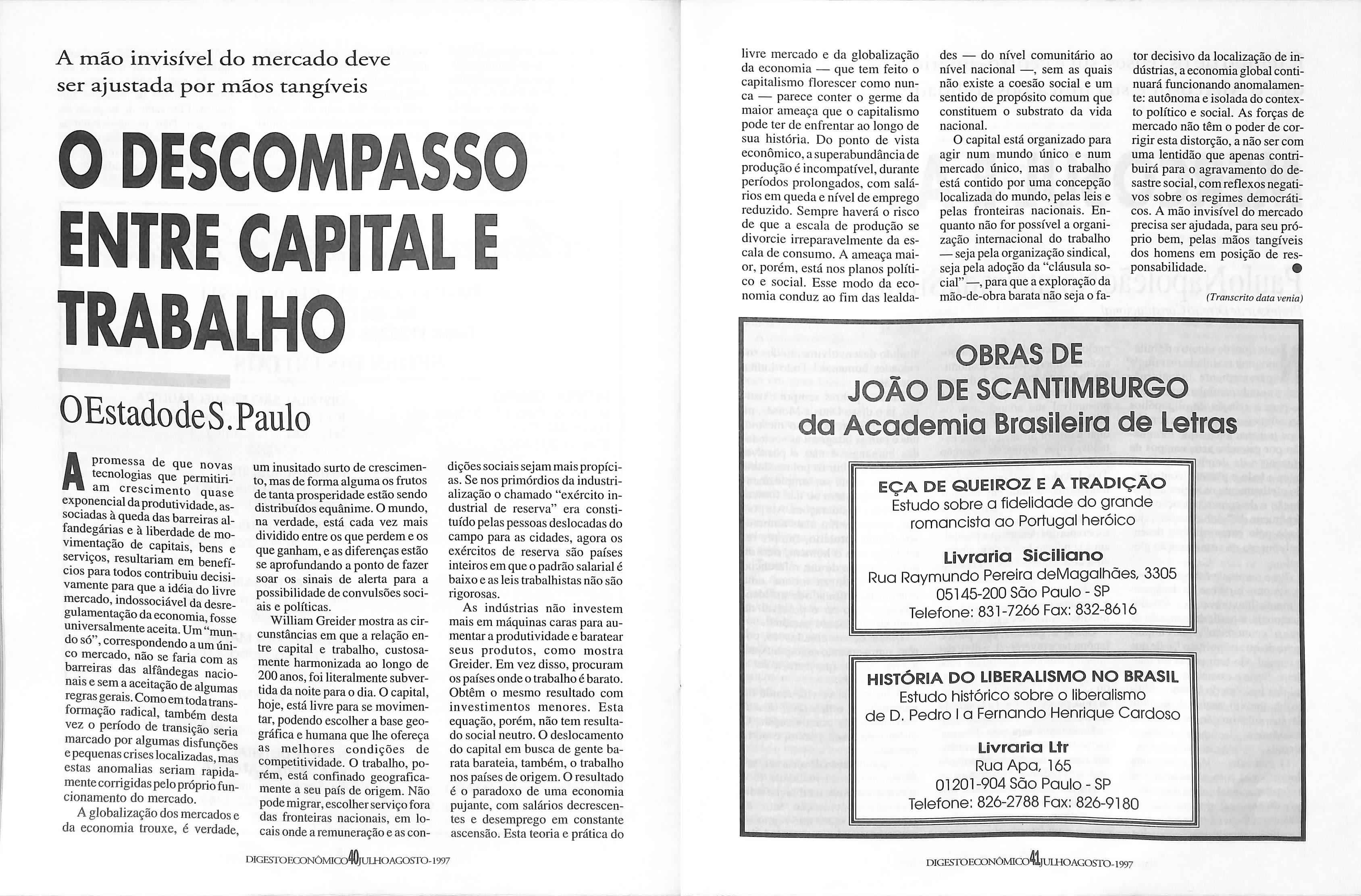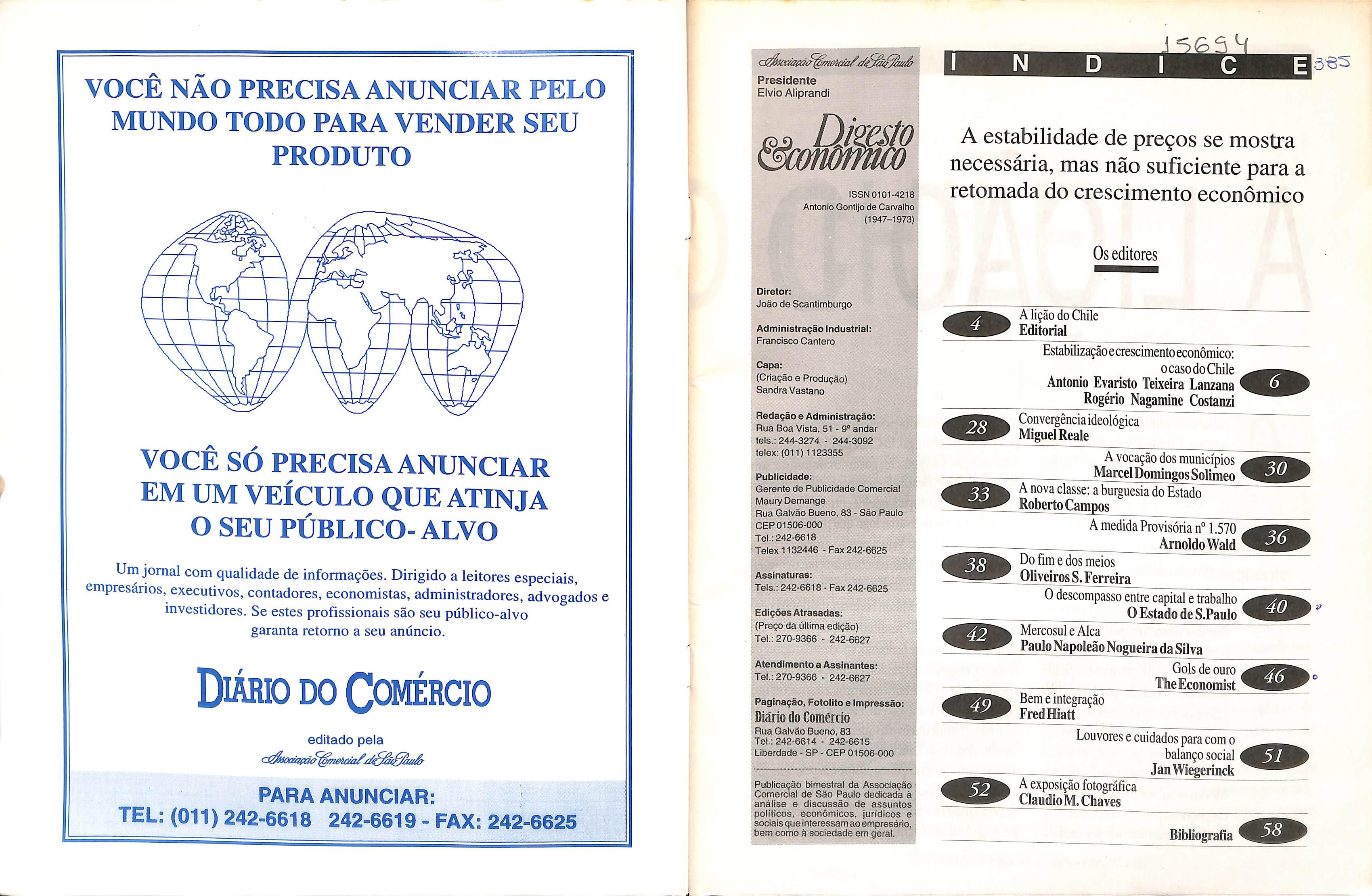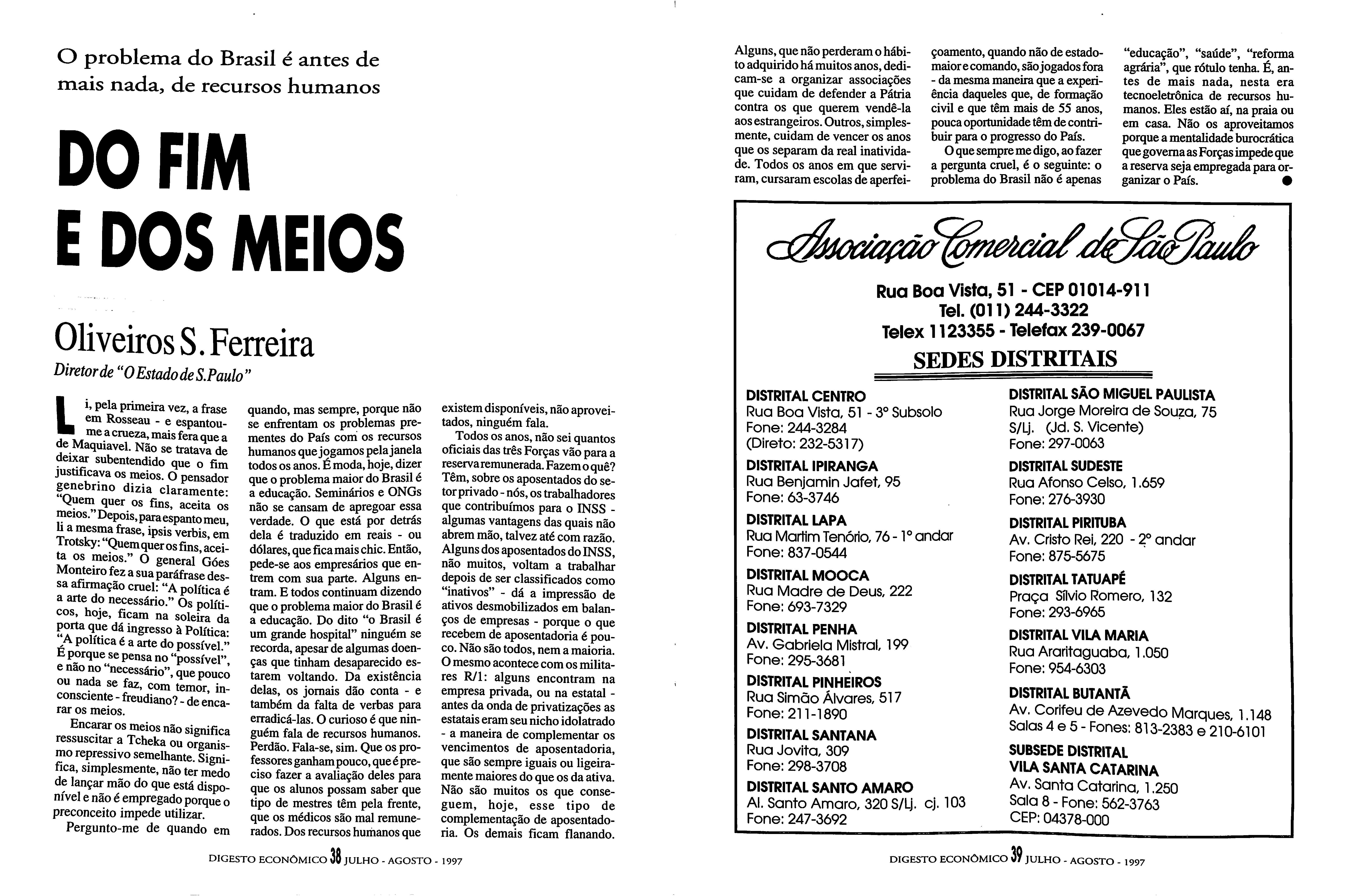 DIGESTO ECONÔMICO, número 385, julho e agosto 1997
