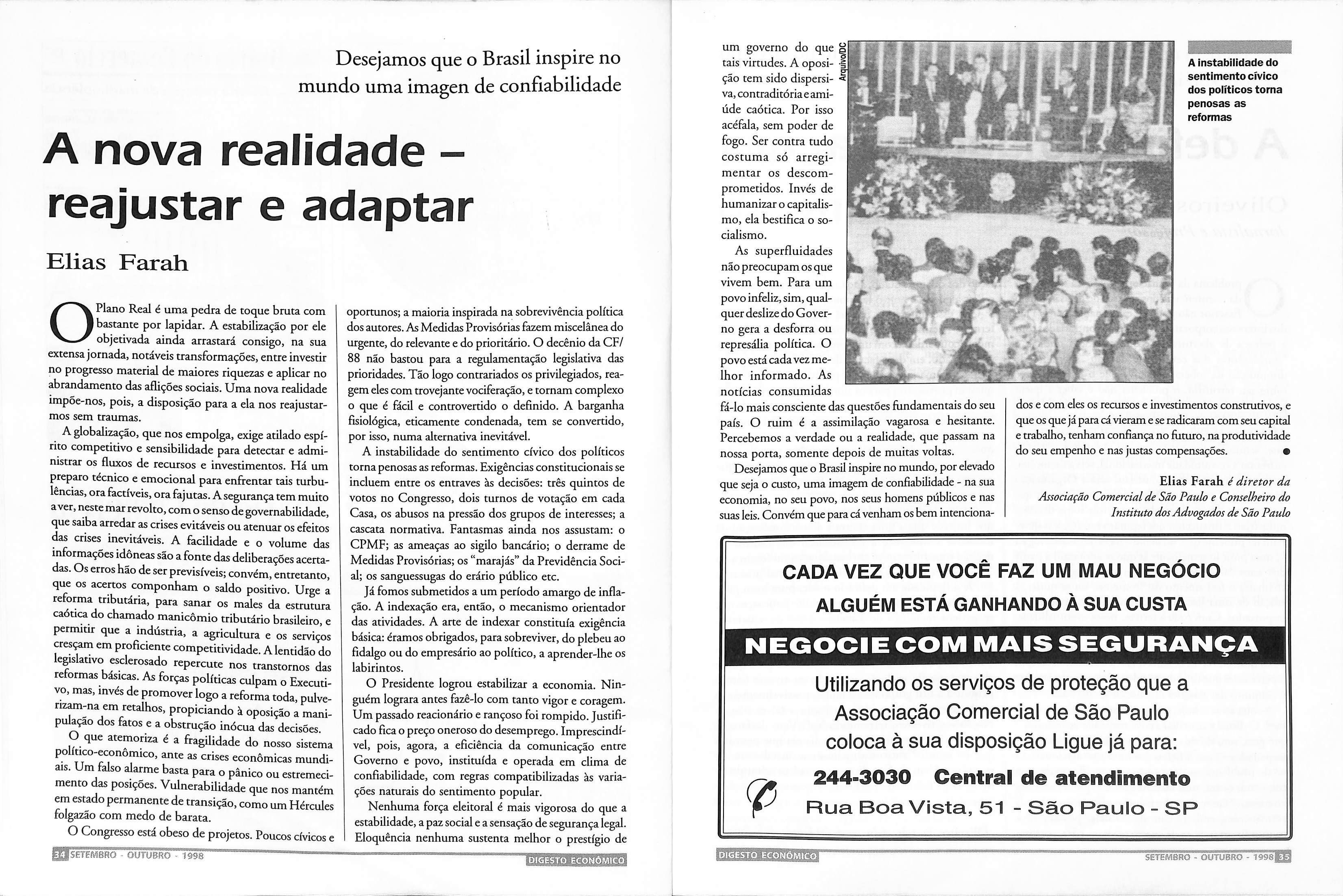 DIGESTO ECONÔMICO, número 392, setembro e outubro 1998