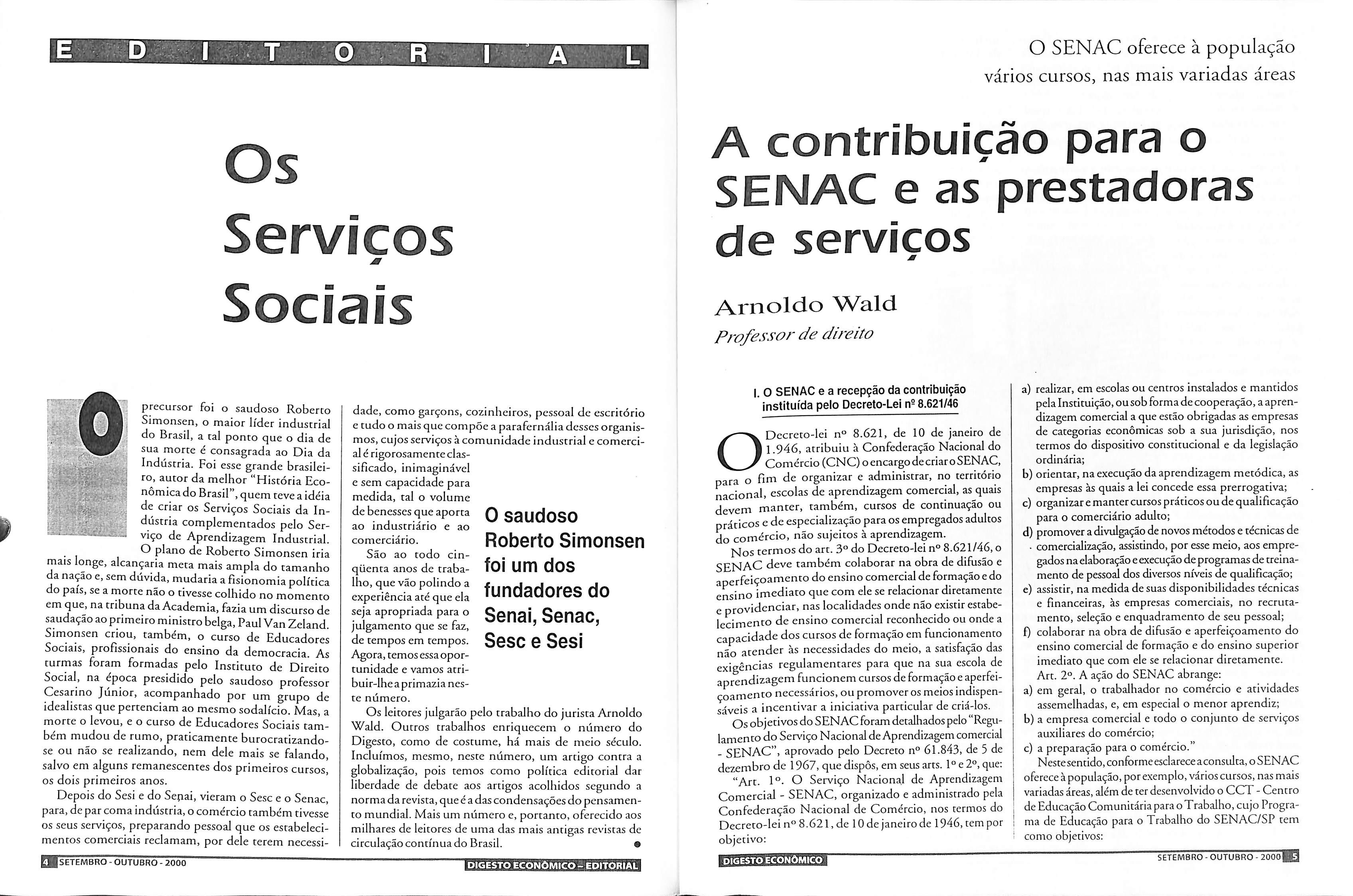 precursor foi o saudoso Roberto Simonsen, o maior líder industrial do Brasil, a tal ponto que o dia de sua morte é consagrada ao Dia da Indústria. Foi esse grande brasilei ro, autor da melhor “História Eco nômica do Brasil”, quem teve a idéia de criar os Serviços Sociais da I dústria