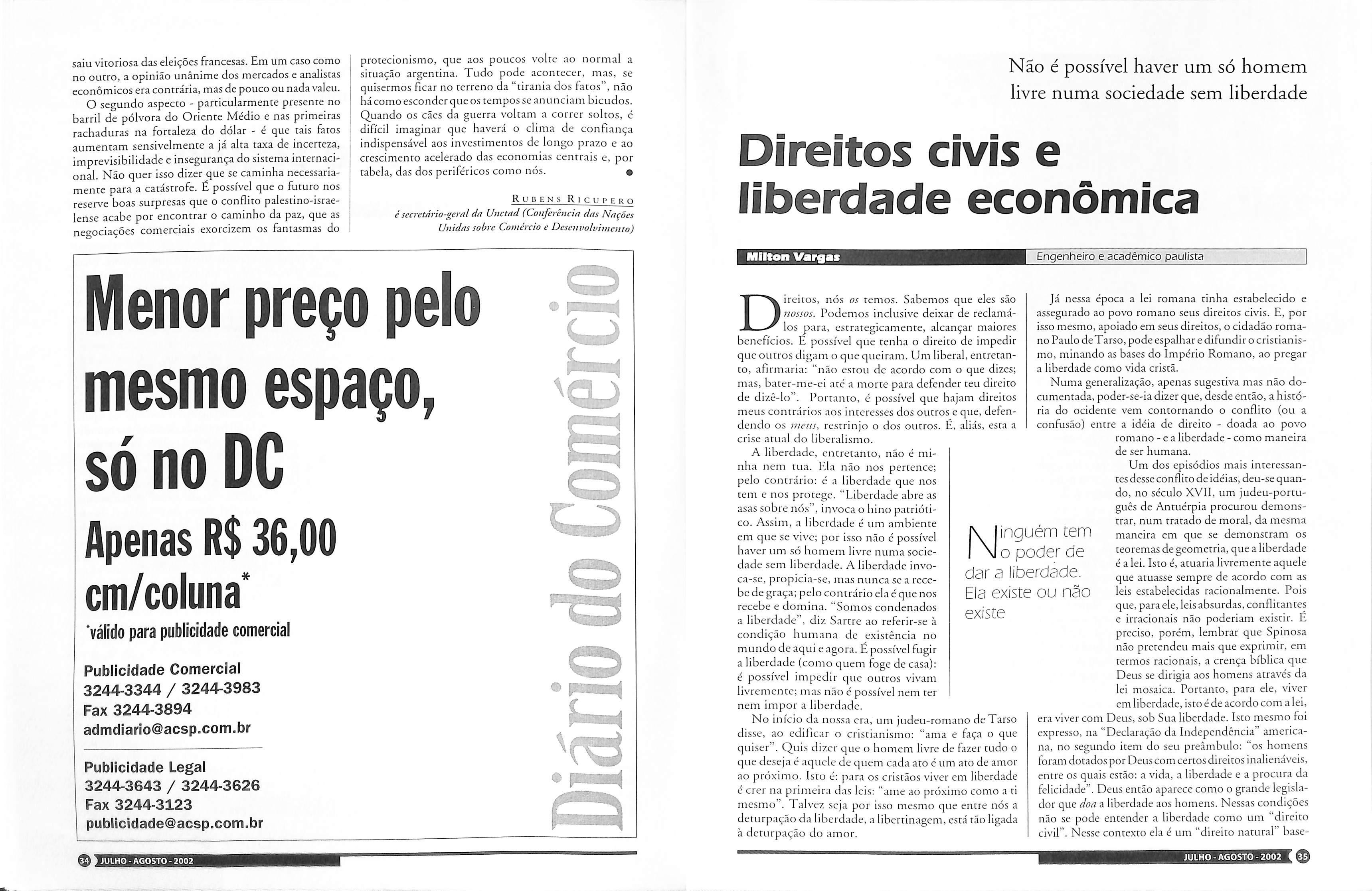 Comercial de São Paulo dedicada à análise e discussão de assuntos politicos, econômicos, jurídicos e sociais que interessam ao empresário, bem como à sociedade em geral.