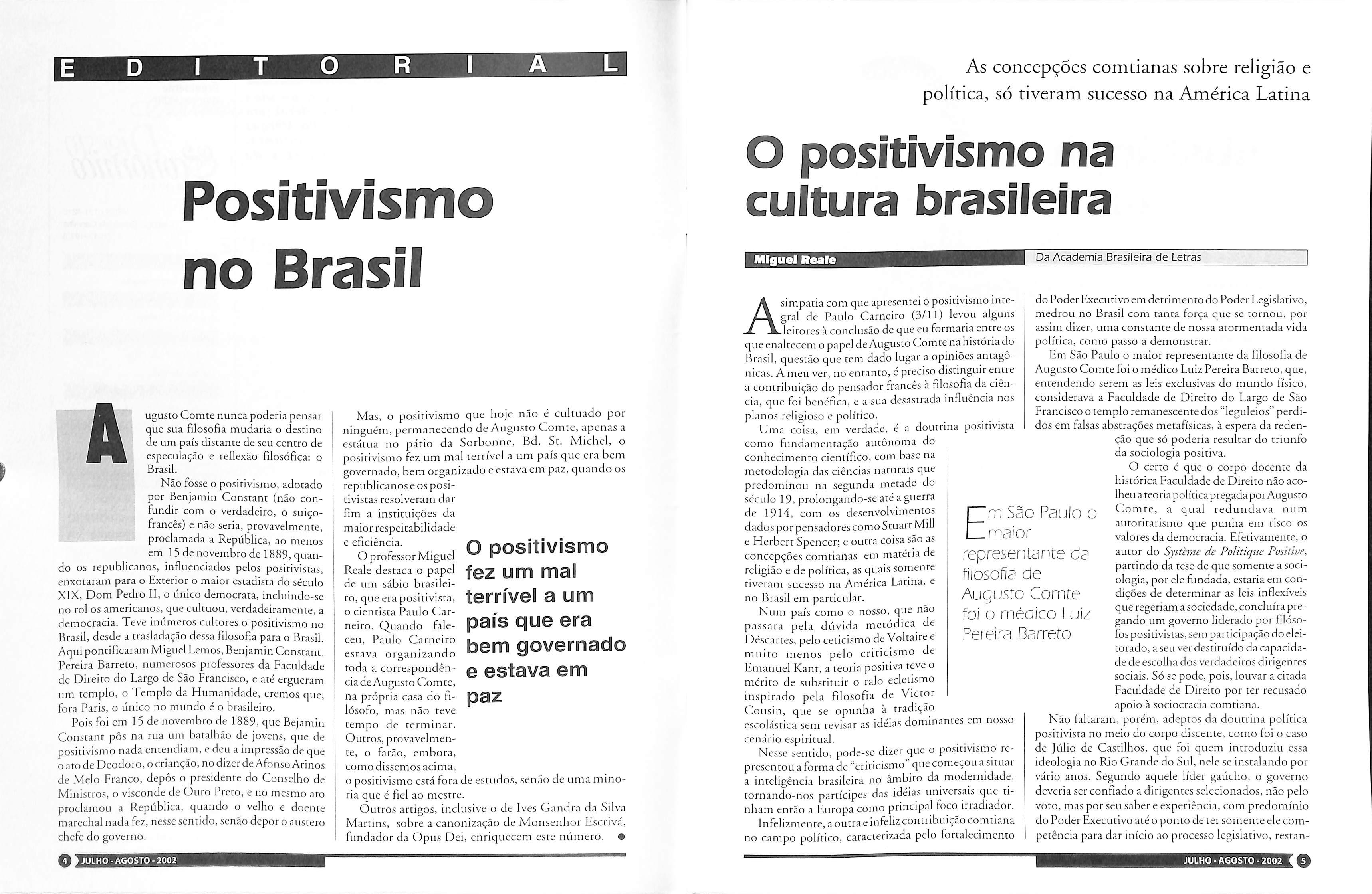 O professor Miguel Rcale destaca o de um sábio brasileiro, que era positivista, o cientista Paulo Car-
