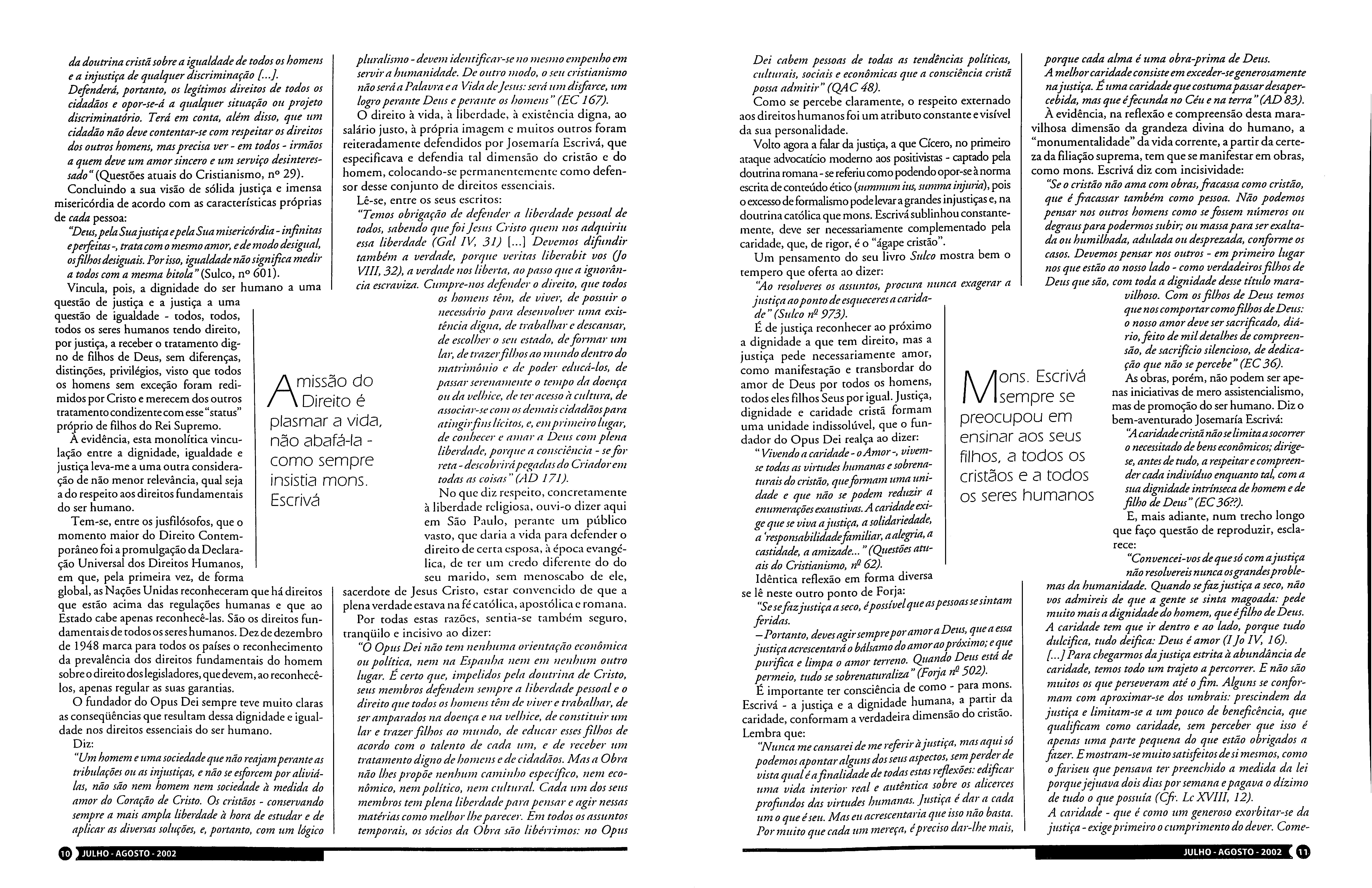 C)utros artigos, inclusive o Martins, sobre a canonização de Monsenhor Lscri\'á, fundador da üpus Dei, enriquecem este número. 9 na a mm na rua um batalhão de jovens, que de nos