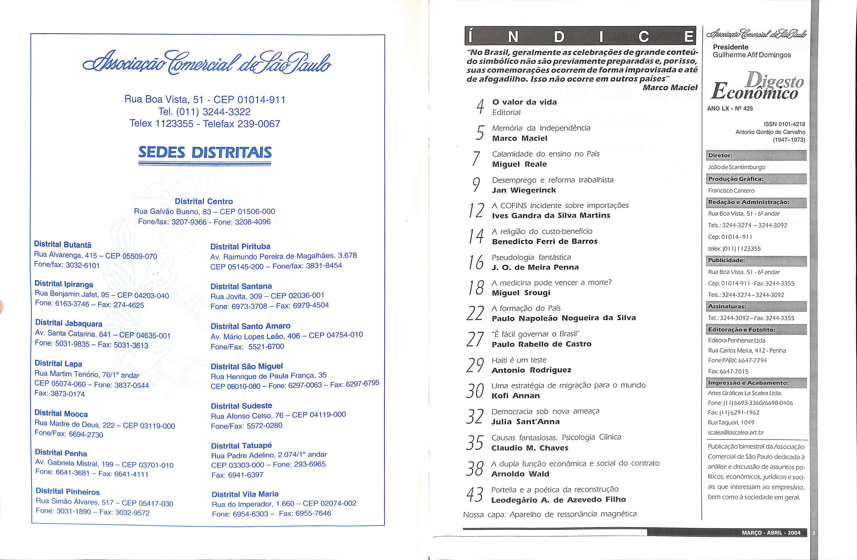 Marco Maciel, Miguel Reale, Jan Wiegerinck, Ives Gandra da Silva Martins, Benedicto Ferri de Barros, J. O. de Meira Penna, Miguel Srougi, Paulo Napoleão Nogueira da Silva, Paulo Rabello de Castro, Antonio Rodriguez, Kofi Annan, Julia Sant'Anna, Claudio M. Chaves, Arnoldo Wald, Leodegário A. de Azevedo Filho