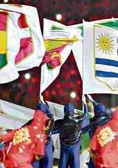 la vestimenta tradicional de los cataríes, el ‘dishdasha’ para ellos y el abaya para ellas, sin que hubiese zonas reservadas por sexos, la ceremonia conti nuó con un homenaje a los cam peonatos anteriores, con las mascotas de cada una de las ediciones realizadas