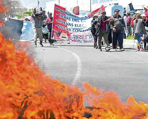 Ayer se mantenían 99 tramos de carreteras bloqueados por manifestantes en 10 de las 25 regiones peruanas que piden la dimisión de Boluarte, quien asumió la presidencia el 7 de diciembre pasado después de que el Congreso destituyó a Pedro Castillo tras su golpe de Estado fallido Las protestas dejan al menos 42 muertos en cinco semanas, según la Defensoría del Pueblo y se reanudaron el 4 de enero después de una tregua por las fiestas de fin de