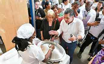 La ministra de Agricultura Cecilia López con el alcalde de Cali, Jorge Iván Ospina, recorrían ayer los proyectos de comedores comunitarios
