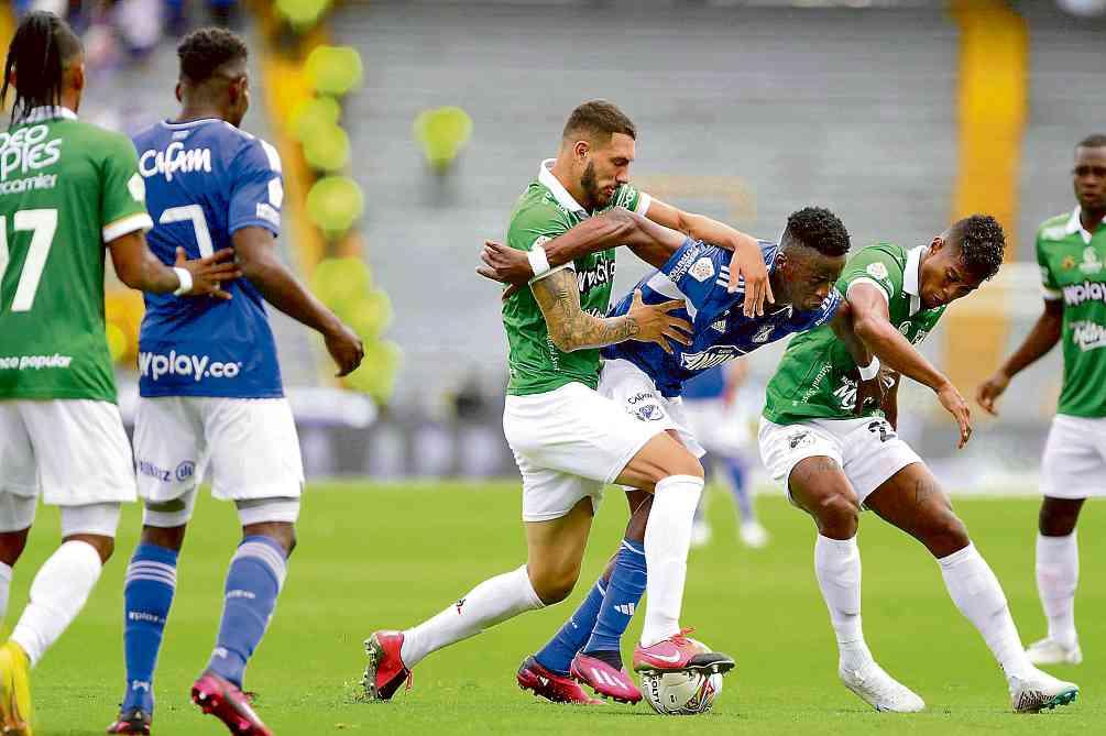 EL CUADRO VERDIBLANCO se vio superado 2-0 ante una nómina mixta de Millonarios, ayer en el estadio El Campín de la capital del país. PÁGINA 10
