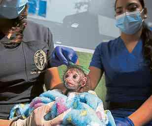 LA RECIÉN nacida Mérida, una mono araña, recibe todos los cuidados de médicos veterinarios del Zoológico de Cali, bajo crianza asistida. PÁGINA 14