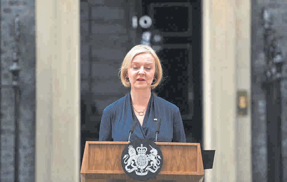 Liz Truss se convirtió ayer en el político que menos tiempo ha ocupa do el puesto de primer ministro en la historia del Reino Unido, al anunciar su dimisión tras 45 días en Downing Street, ace chada por la tormenta fi nanciera que desató el agresivo recorte de im puestos con el que aspira ba a impulsar la econo mía