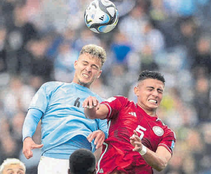 Juan Daniel Roa disputa el balón con un jugador de Gimnasia en el compromiso que ayer perdieron los santafereños 1-0 EFE