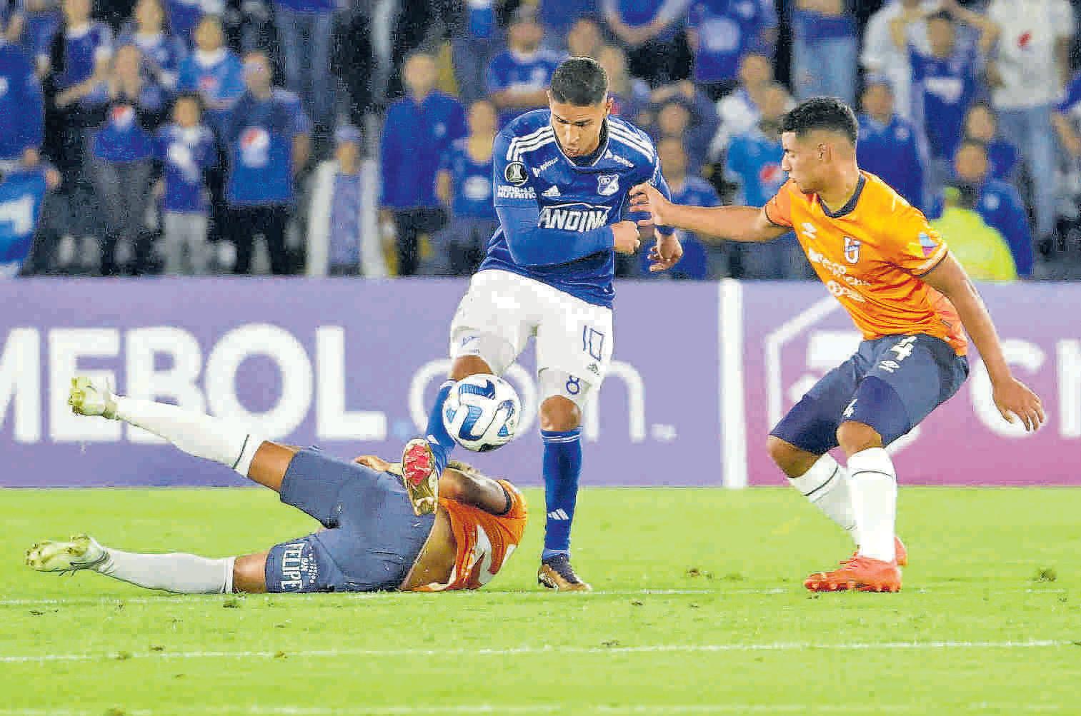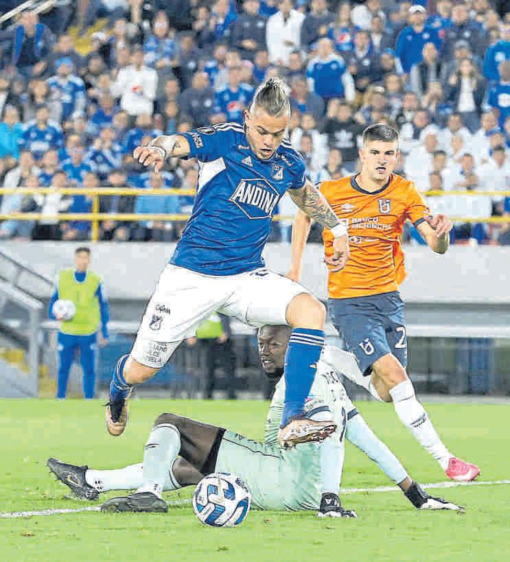 DANIEL CATAÑO marcó el gol con el que Millonarios venció 2-1 a Universidad Católica, resultado que permitió a los bogotanos avanzar en Copa. /PÁG 10