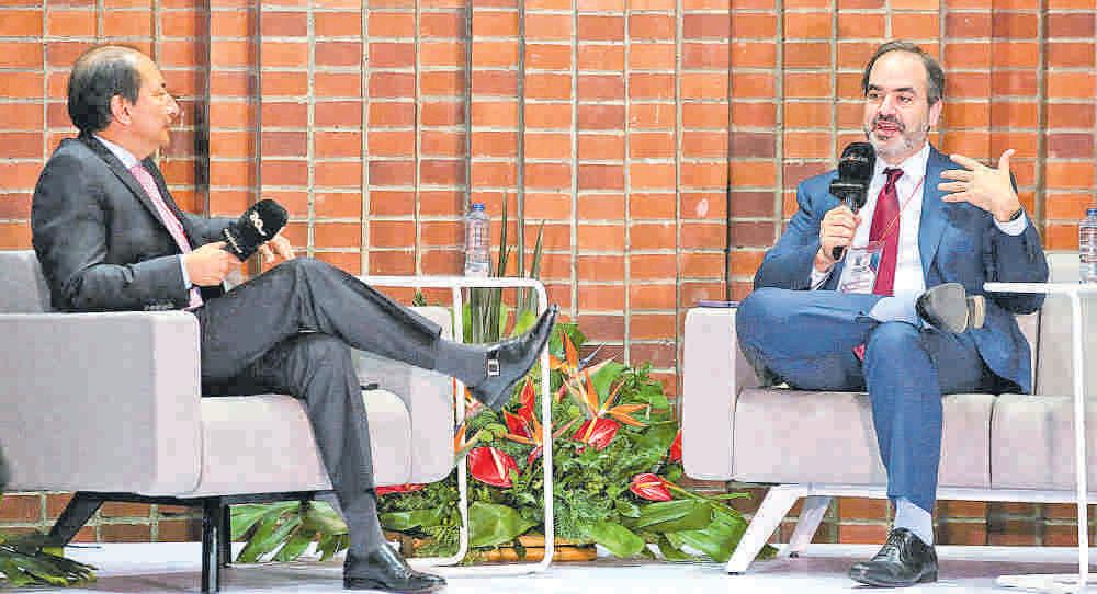 Michael Greenspon, director de la SIP y directivo del NY Times (derecha) y Andrés Mompotes, director del EL TIEMPO, en diálogo JUAN P RUEDA