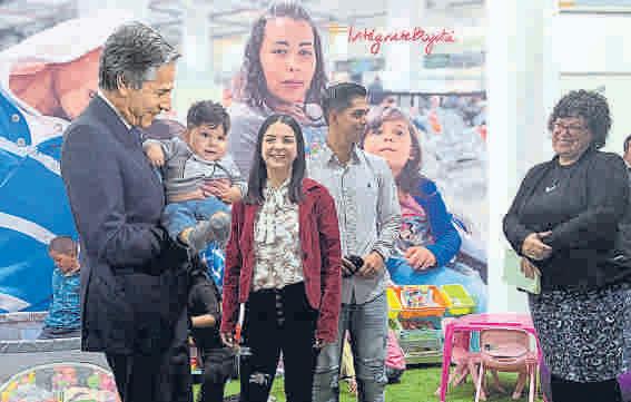 El secretario de Estado de EE UU Antony Blinken (i) charló con una familia de venezolanos que dejaron su país hace seis meses junto a su bebé EFE