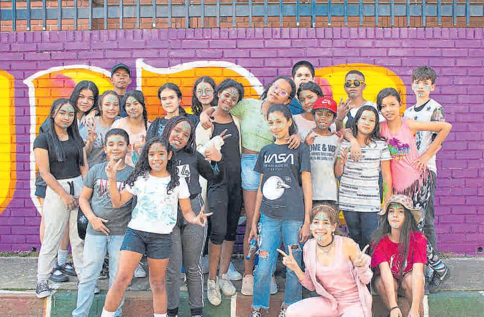 tó talleres de muralismo, pintura, arte, actividades lúdicas y jornadas de pin tura, y de esta manera lo graron conectar a la co munidad educativa, me diante una metodología participativa, colaborati va y creativa, para gene rar valor social en el en torno