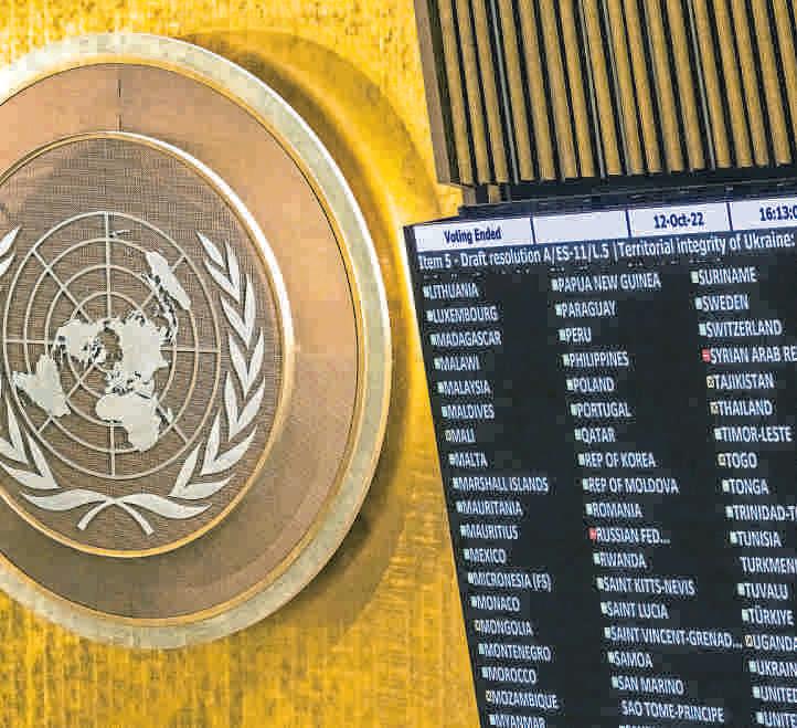 La resolución, titulada ‘Integridad territorial de Ucrania: defensa de los principios de la Carta de las Naciones Unidas’, de clara que "los actos ilíci tos", en referencia a los re ferendos que realizó Ru sia en Donetsk, Jersón, Lugansk y Zaporiyia, del 23 al 27 de septiembre pa sados, "no tienen validez alguna ( ) ni sirven para modificar de ninguna ma