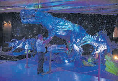 En el centro comercial Valle del Lili se realiza una exposición con grandes fi guras de dinosaurios y dra gones en un ambiente car gado de naturaleza y fanta sía